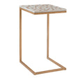 This modern accent table will add a hint of industrial yet coastal flare to any living or office space. Featuring a gold geometric frame and neutral capiz shell finish on the table top, this unique piece will serve as a beautiful accent in nearly any decor. This simple c-frame table is perfect for displaying small decor items such as candles, vases, and pictures frames.