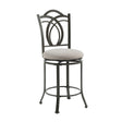 With its transitional design, durable materials, and sweeping curves, this handsome bar stool is a perfect addition to any space. The metal frame features an espresso finish, offering warmth and versatility to complement a variety of decor styles and color schemes. A decorative metal backrest provides ample support, while the 24.5" seat height is perfect for counters 35" to 39" high. The seat and backrest swivel a full 360 degrees, allowing easy movement. Wrapped in coffee oak faux leather, the seat pairs seamlessly with the frame while remaining durable and easy to clean.