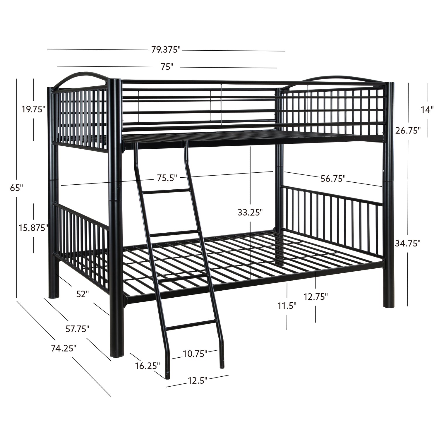 - Multiple Sizes: Available in twin/twin, twin/full, and full/full configurations to suit your spaceSecure Support: Heavy-duty steel slats (17 top and 17 lower per bed) eliminate the need for box springs or bunkie boards