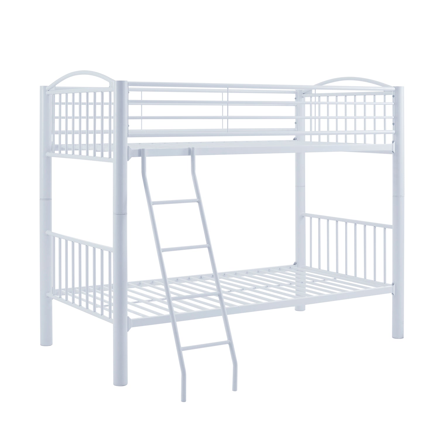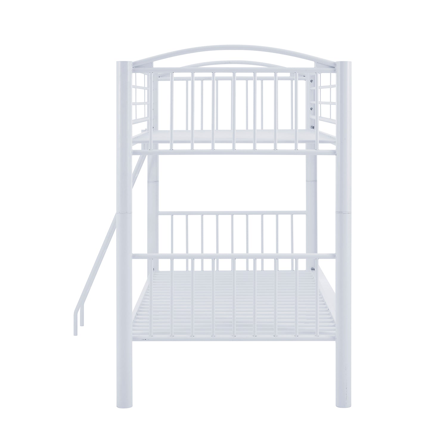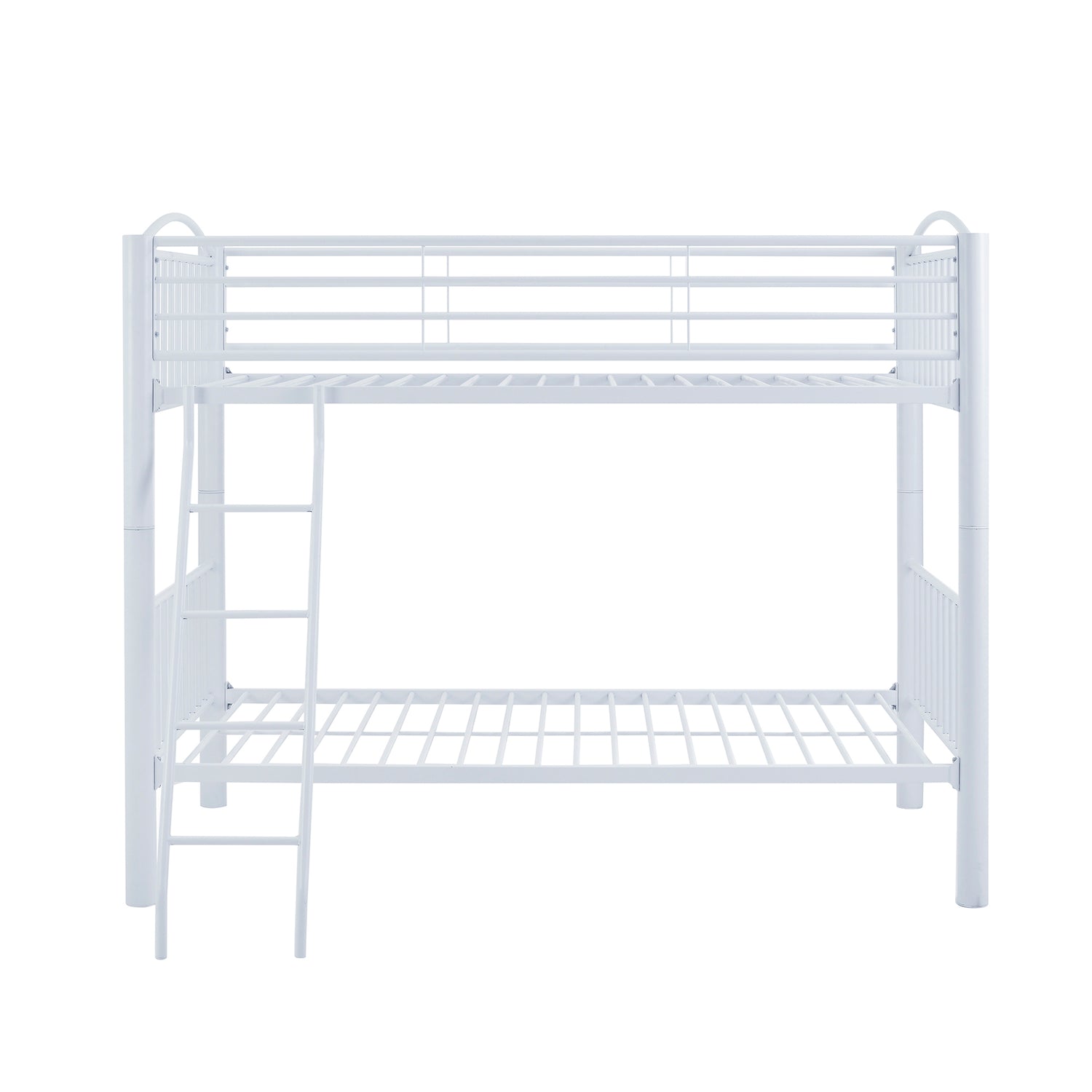 Maximize space and style with this durable metal bunk bed collection, available in multiple sizes and finishes to fit your family’s needs. Crafted with a heavy-gauge steel frame and finished in a sleek powder coat, each bunk bed combines strength, safety, and modern appeal. The sturdy step ladder offers easy access to the top bunk, while guardrails ensure peace of mind. Designed to grow with your household, these bunks support standard mattresses up to 8" thick and deliver a versatile solution for kids, teens, or guest rooms. Mattresses not included.