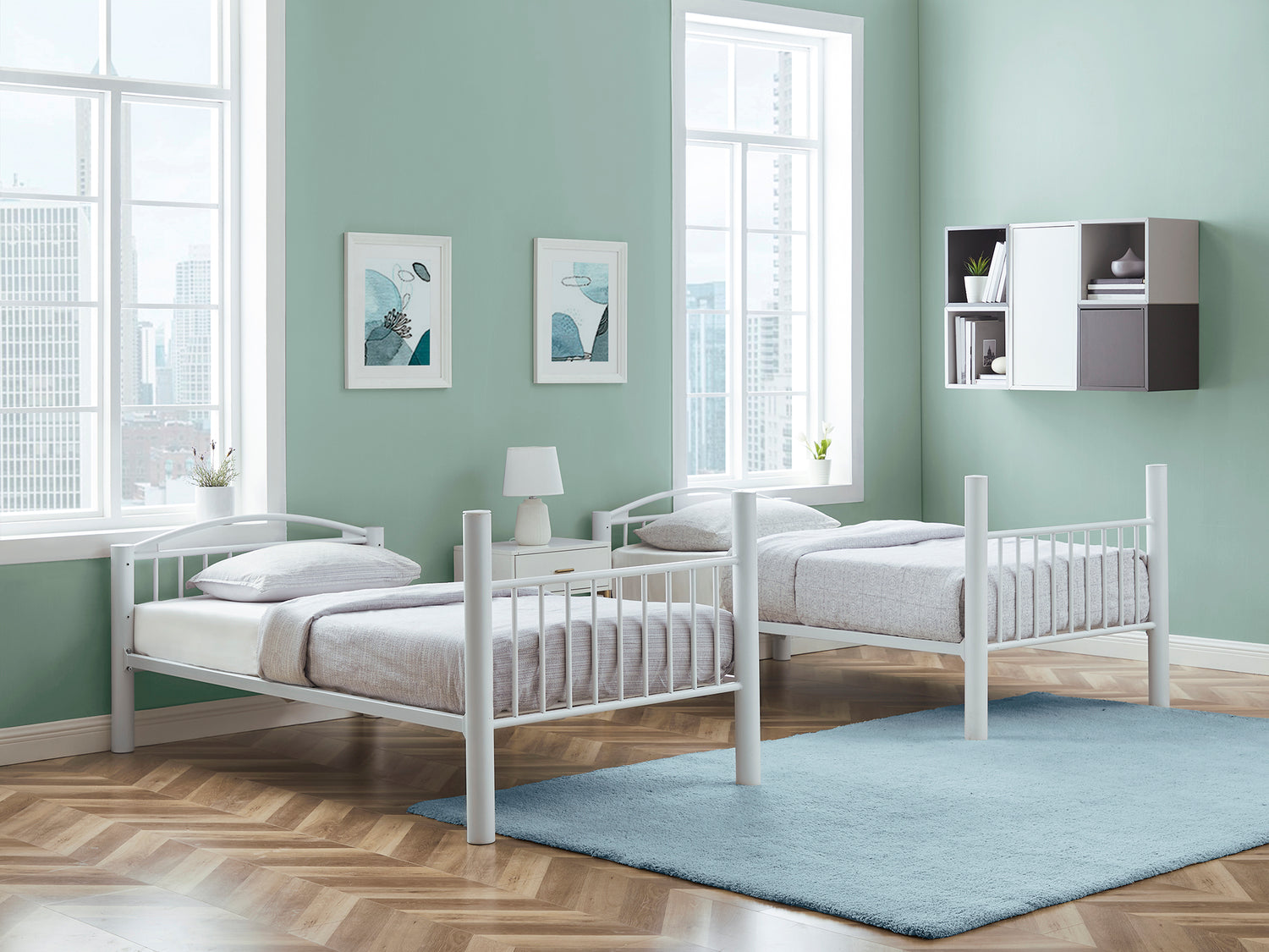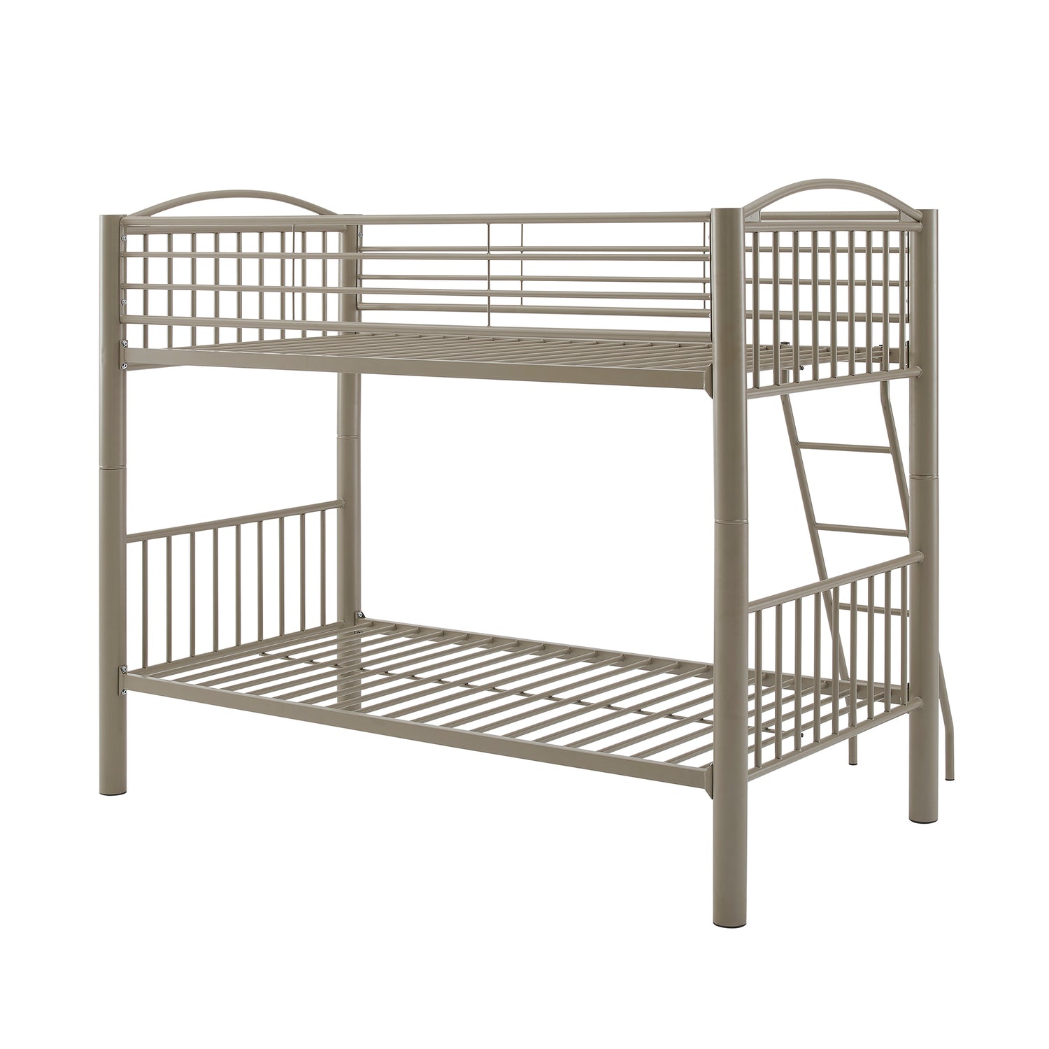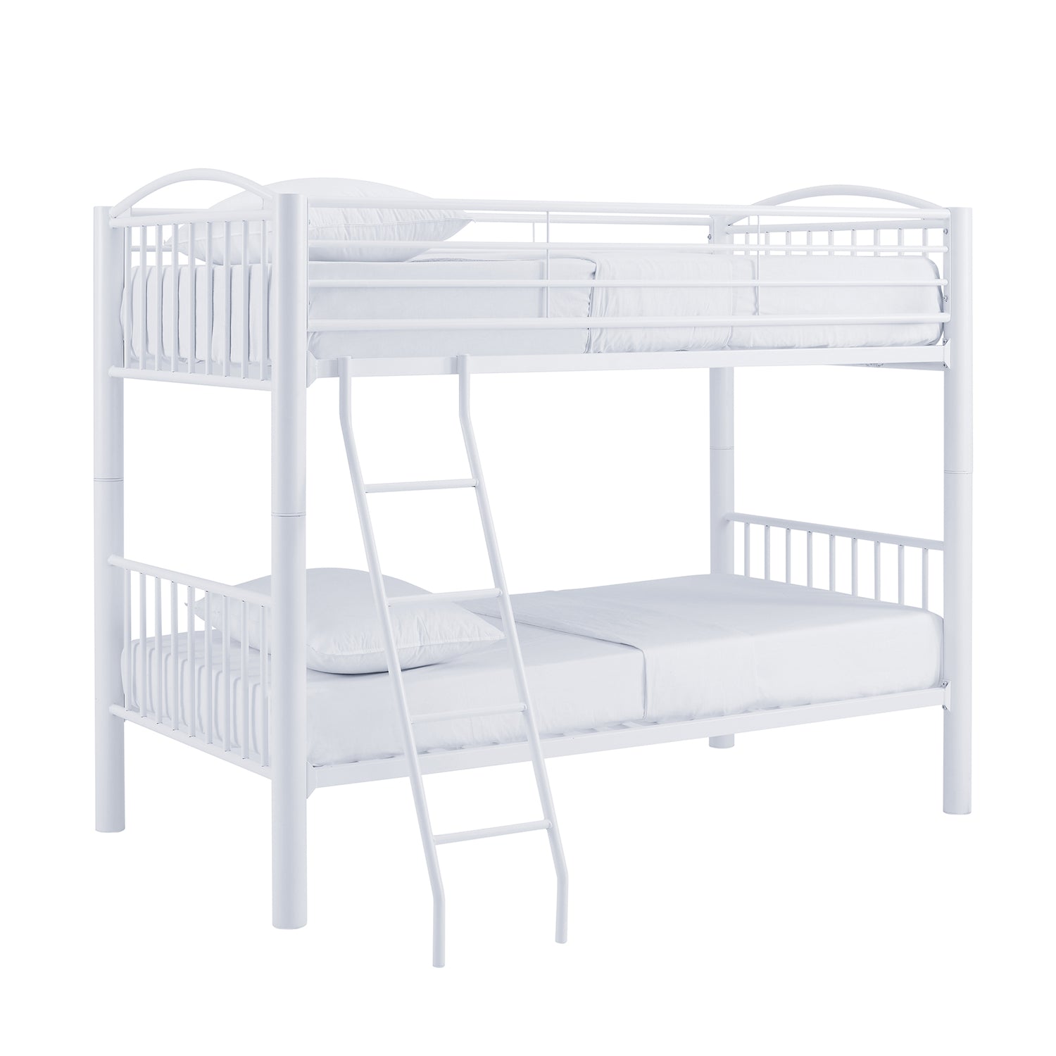 Maximize space and style with this durable metal bunk bed collection, available in multiple sizes and finishes to fit your family’s needs. Crafted with a heavy-gauge steel frame and finished in a sleek powder coat, each bunk bed combines strength, safety, and modern appeal. The sturdy step ladder offers easy access to the top bunk, while guardrails ensure peace of mind. Designed to grow with your household, these bunks support standard mattresses up to 8" thick and deliver a versatile solution for kids, teens, or guest rooms. Mattresses not included.
