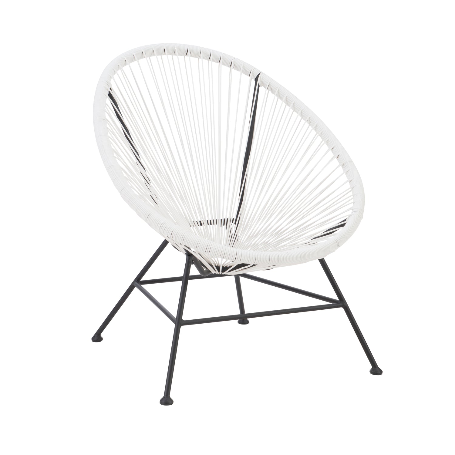 Enjoy a warm breeze on your outdoor patio or roof deck with this modern hammock weave chair. The black or white weather resistant wicker roping is held together by an oval frame made of steel for ensured strength and stability. A black powder coated finish protects against rust and further accentuates this eye-catching piece's sleek aesthetic. Incredibly lightweight and breathable, this handwoven chair is inspired by midcentury design, outfitted for today's standards with surprising comfort.