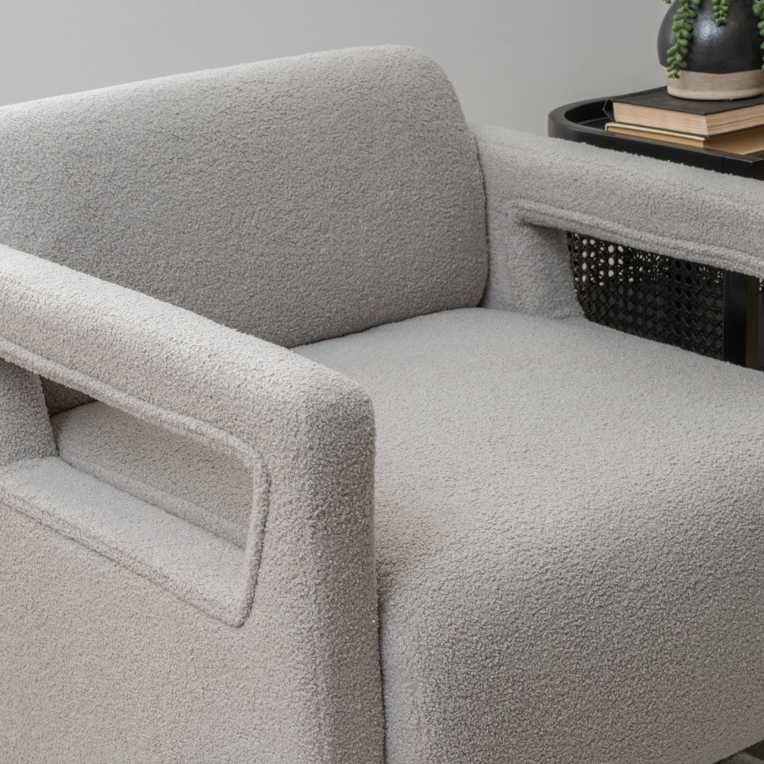 - Contemporary Design: Featuring a unique rectangular cutout in the armrest, this chair combines modern elegance with a touch of artistic flair, making it an attention-grabbing focal point in your living space.