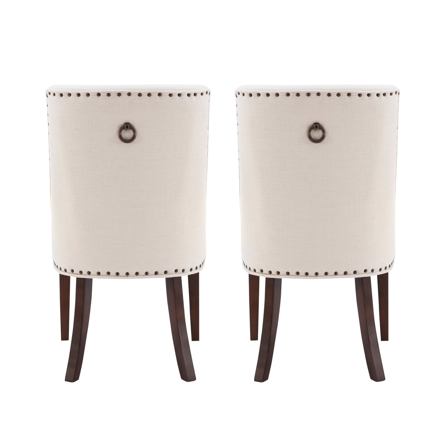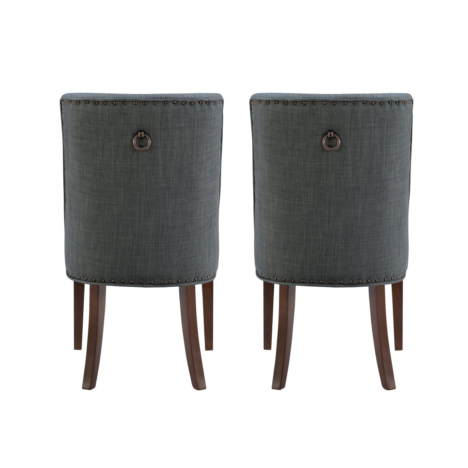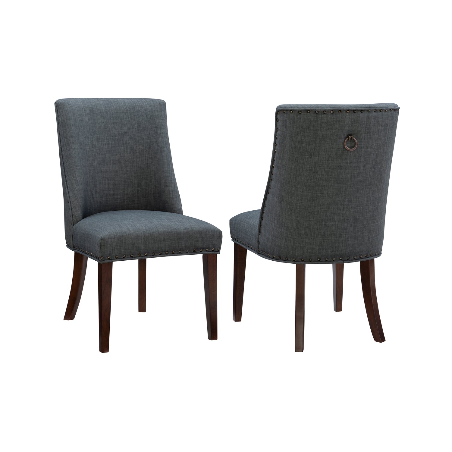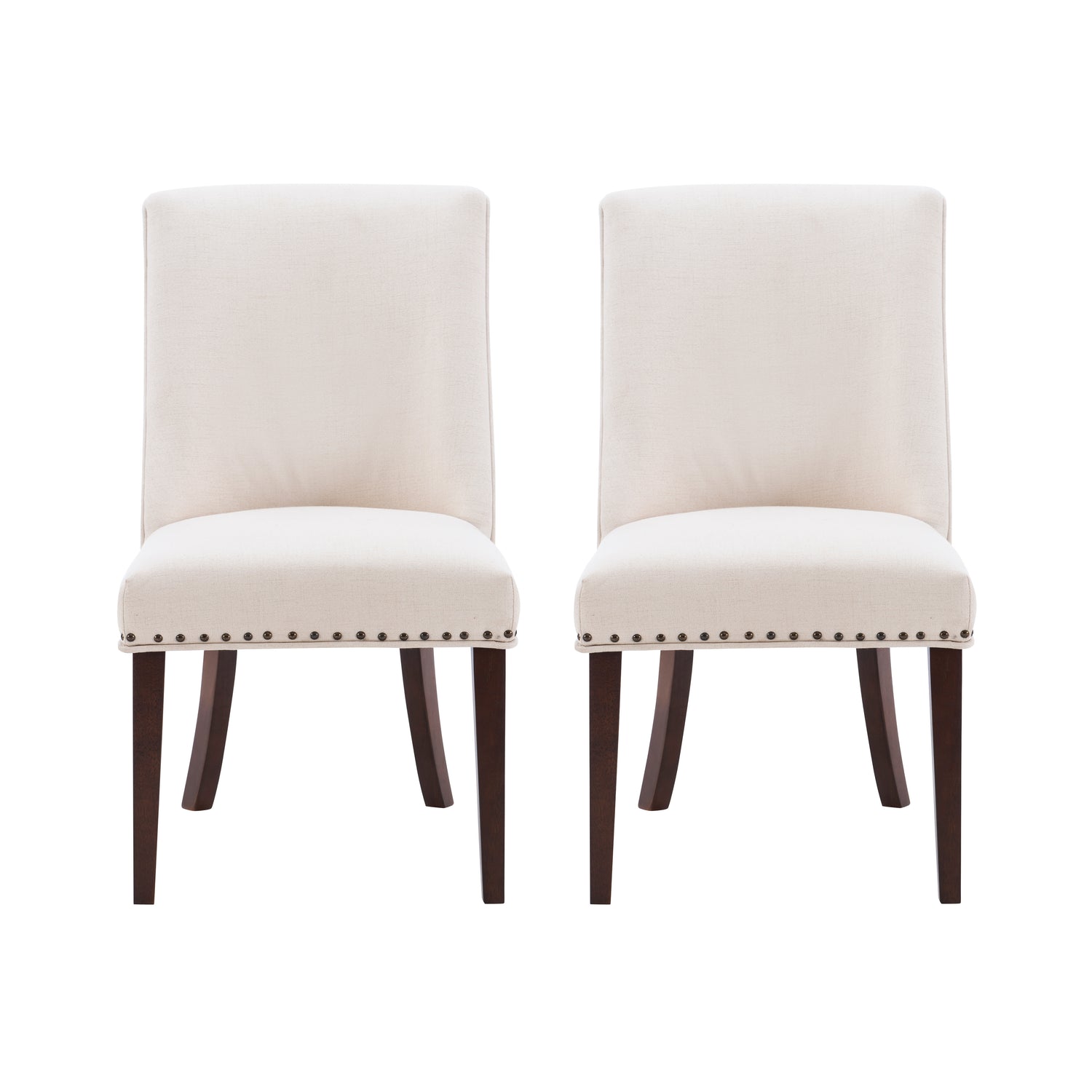 This armless dining chair brings a sense of well-appointed grace and style to any setting it’s placed in. Mottled faux leather or fabric is stretched over supportive foam cushions for a comfortable perch that’s as easy to maintain as it is to fuse with surrounding decor. Antique bronze nailhead trim outlines the seat and curved barrel back, while a matching bronze ring Faux Leatherl on the backside ensures tailored elegance from every angle. The tapered rubberwood legs are finished in a black, natural or espresso stain that highlights the woodgrain and leans into a timeworn, weathered look. This timeless perch is also available as part of a complete 4-piece nook set with a banquette and beveled glass table.
