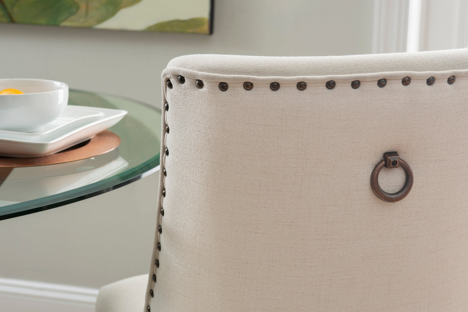- Antique Bronze Nailhead Trim: Neatly spaced nailheads trace the edge of the seat and backrest, adding a handcrafted touch. The antique bronze tone brings a vintage-inspired feel that pairs beautifully with both classic and modern decor.