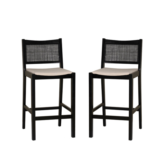 Beaux Cane Stools (Set of 2) - Black / Set of 2 Bar Stools is backordered and will ship as soon as it is back in stock.