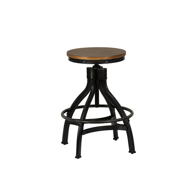 Bring a bold industrial accent to your home with this pair of adjustable stools. Featuring dark gunmetal frames with gracefully curved legs and circular footrests, these stools are both incredibly sturdy and stylish. The round wooden seats swivel 360 degrees and are hand-brushed in a brown or grey stain that beautifully compliments the distressed finish of the industrial bases. Outfitted with adjustable height mechanisms, they can seamlessly transition between 24” and 29”, making them ideal for kitchen islands, home bars, and countertop tables. With robust construction, vintage-inspired aesthetics, and adaptable design, this set makes for a striking addition to dining areas, living rooms, and creative workspaces.
