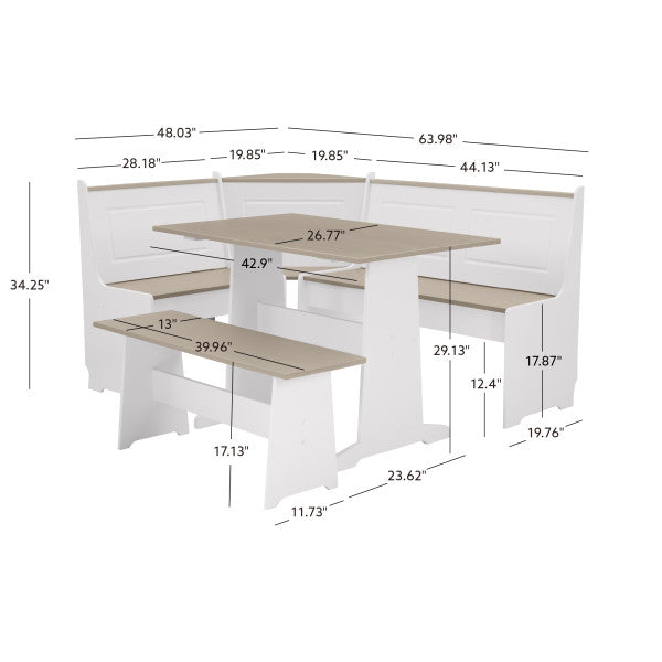 - Complete 3-Piece Set: Includes a spacious table, 2-seater bench, and 3-part L-shaped corner bench for a cohesive, space-conscious setup. Perfect for maximizing seating in kitchens, breakfast areas, or compact dining spaces.