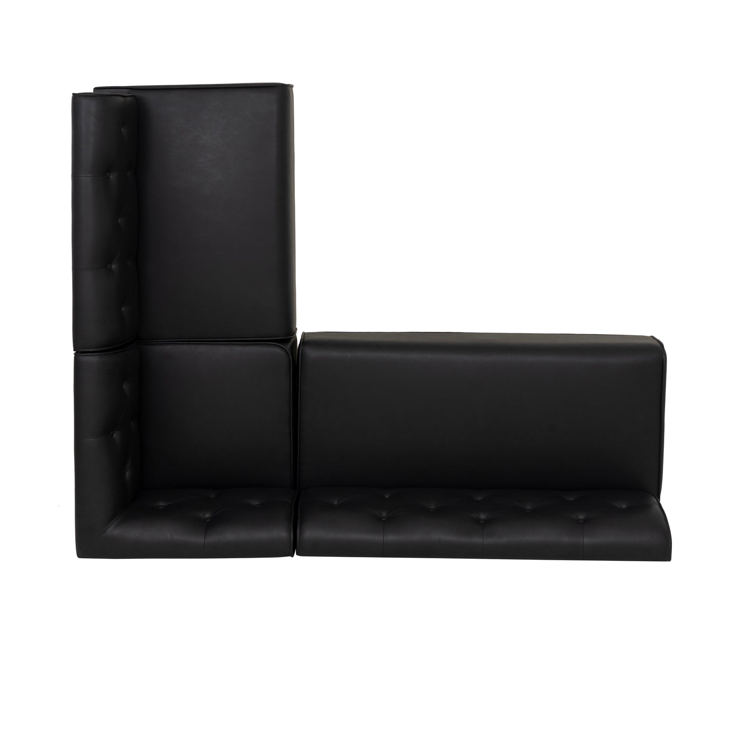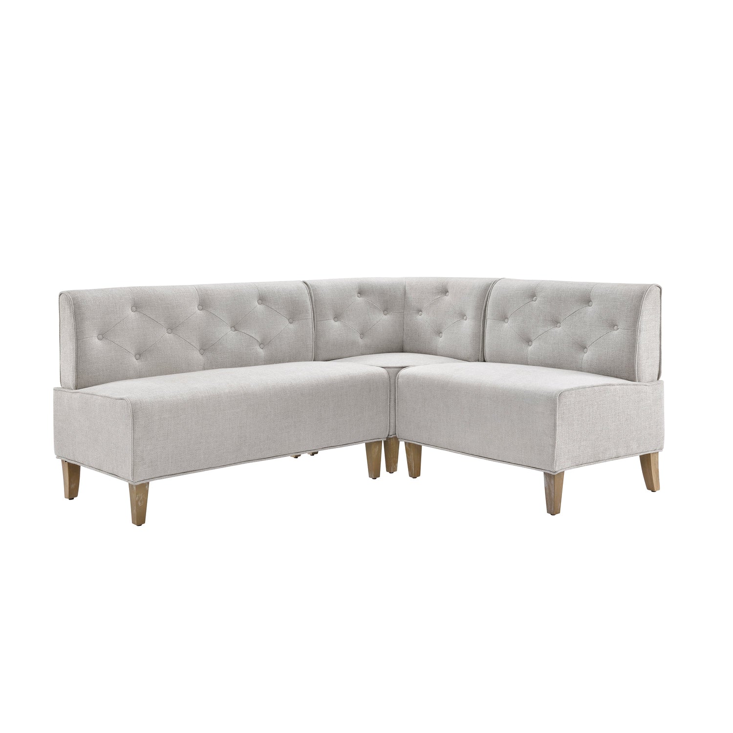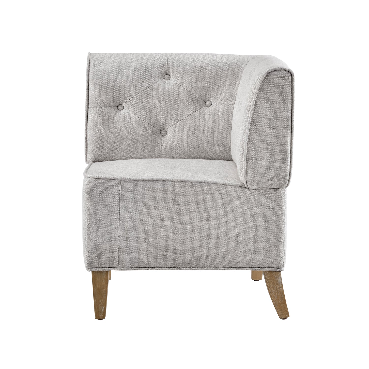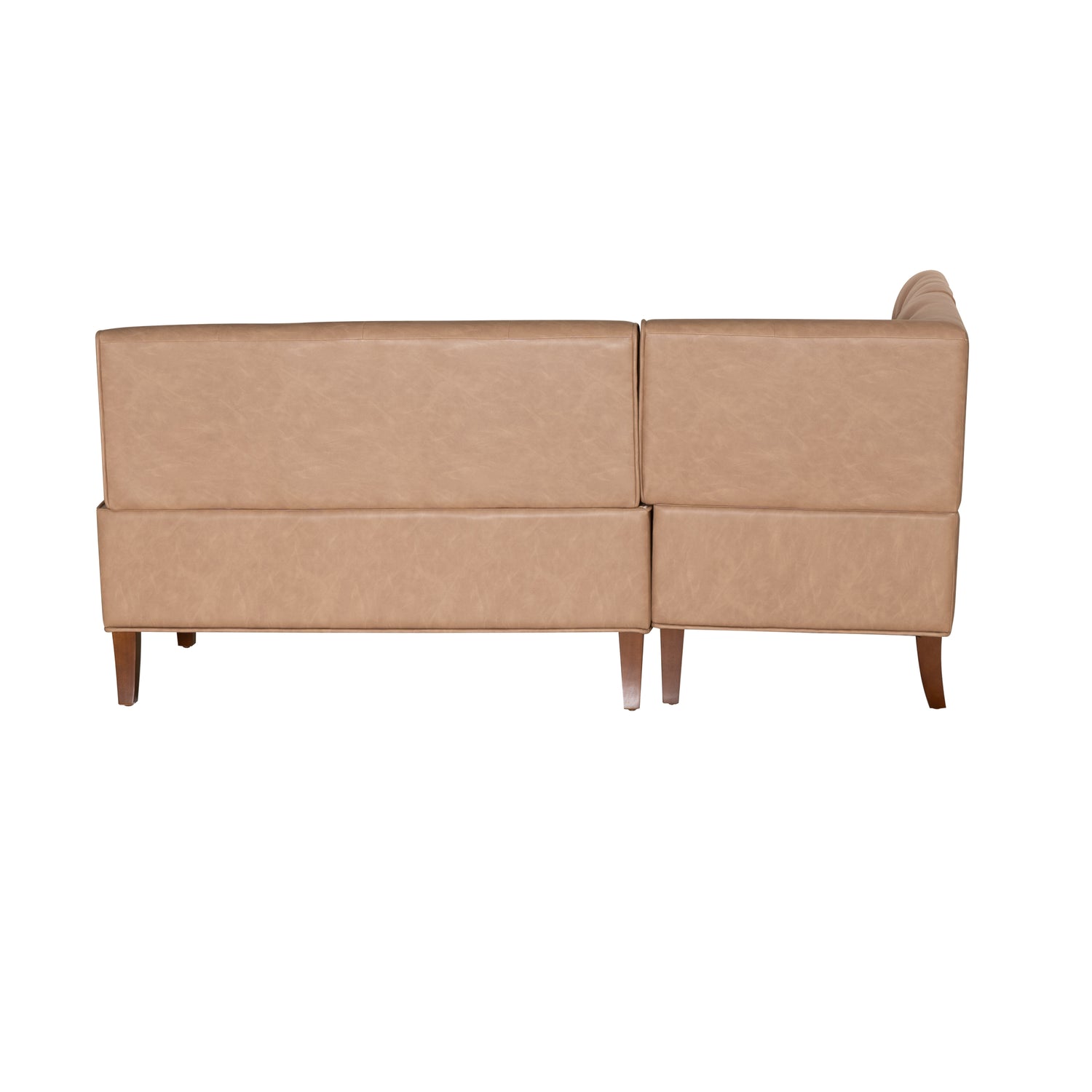 Style meets smart seating with this reversible corner nook, wrapped in black faux leather, light gray fabric or tan faux leather with elegant button tufting for a timeless, tailored look. Designed to fit seamlessly into corners, this L-shaped bench adds instant structure to your breakfast nook or dining area while maximizing seating. Reversible configuration gives you layout flexibility, while built-in levelers help keep things steady on uneven floors. Whether you're enjoying a slow morning coffee or hosting a casual dinner, this nook creates a cozy, elevated space that invites you to stay a little longer.