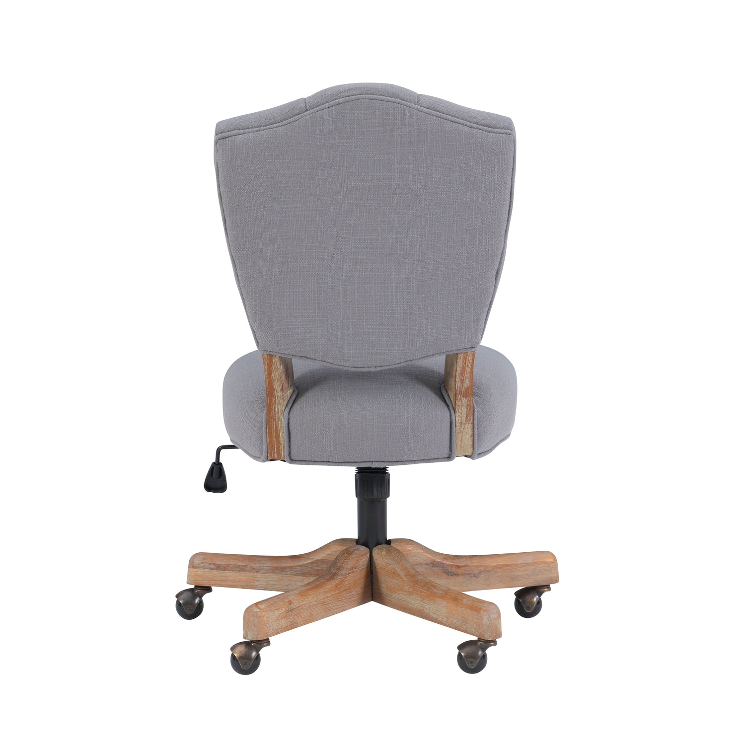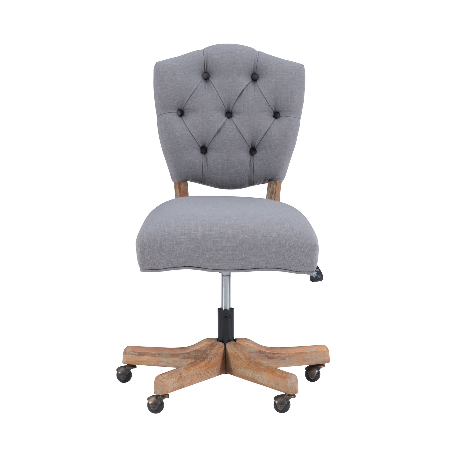 This is a traditional yet stylish home office chair. The detailed tufted back and padded Gray seat brings out the chair's timeless design. The gray wash base accents the chair and offers a rustic feel. From its adjustable height, classic style, and structured form this piece will add charm and comfort to any home office or workspace.