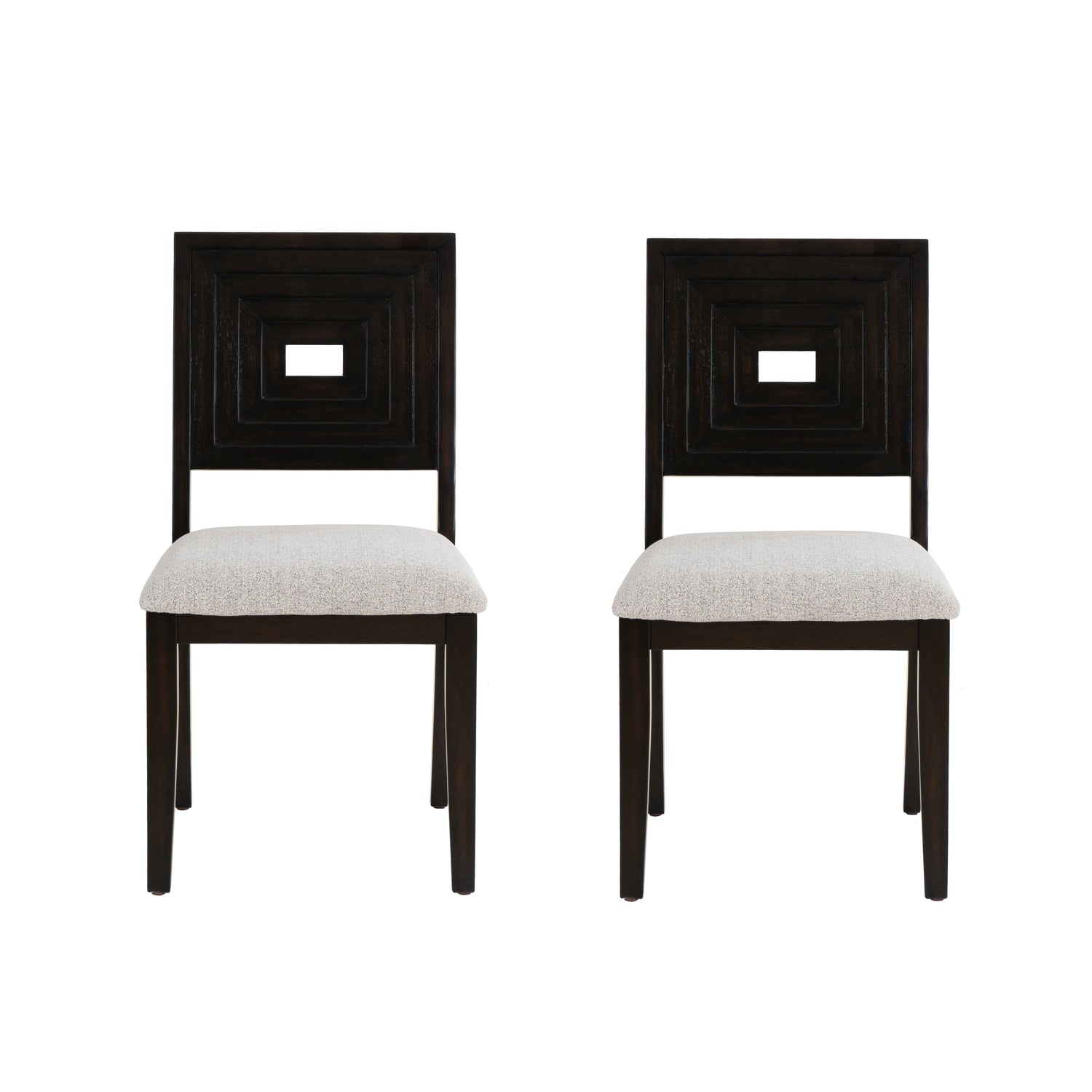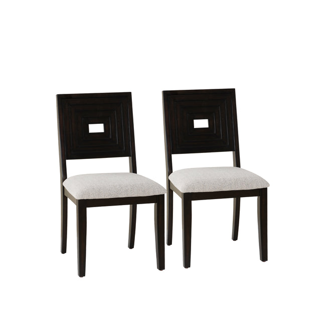 Elevate your dining experience with our set of two chairs, that have a rich espresso finish, for a touch of modern elegance. Crafted with durability in mind, these chairs feature a robust weight capacity of 350lbs, ensuring sturdy support for you and your guests. The addition of plush upholstered cushions enhances comfort during meals, making dining a luxurious affair. Whether used as dining chairs or accent pieces, this set effortlessly combines style and functionality to enhance your home decor.