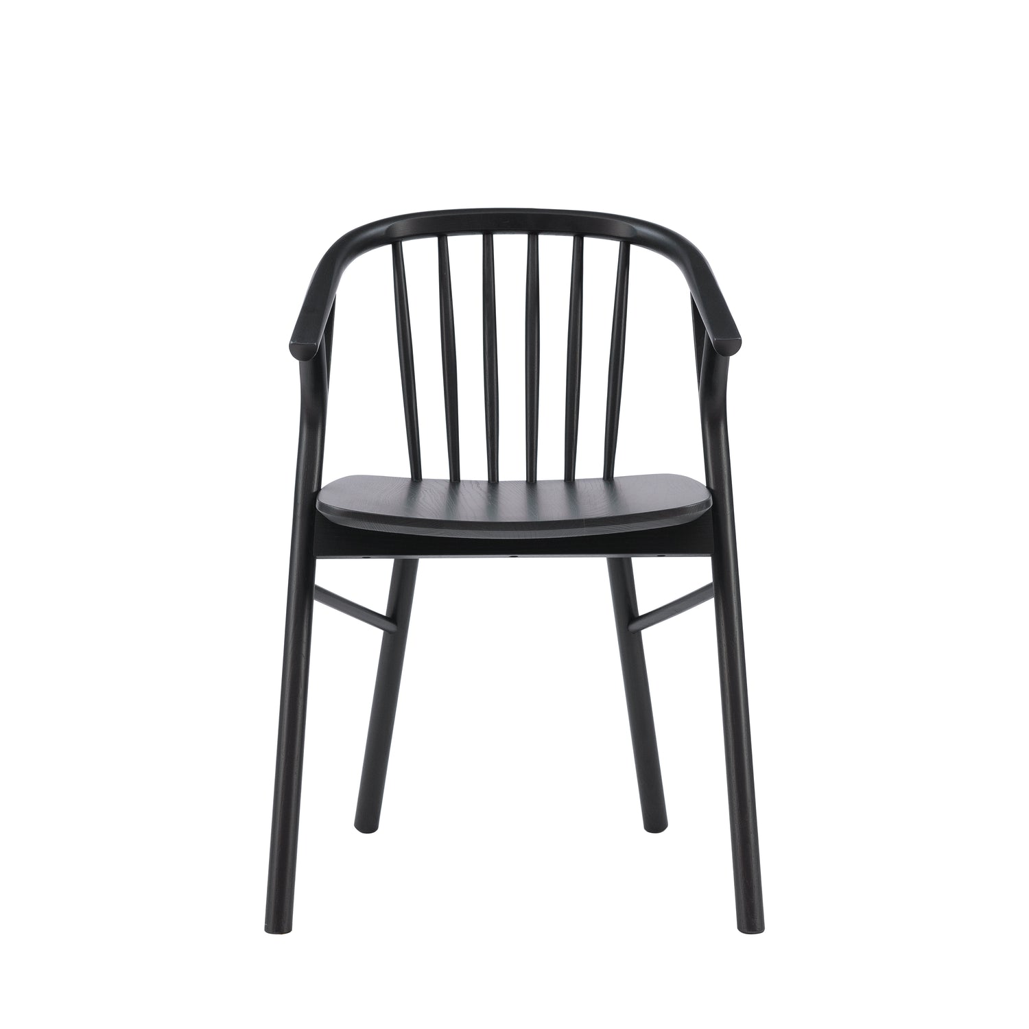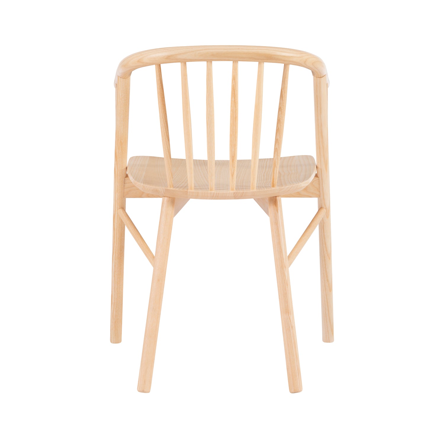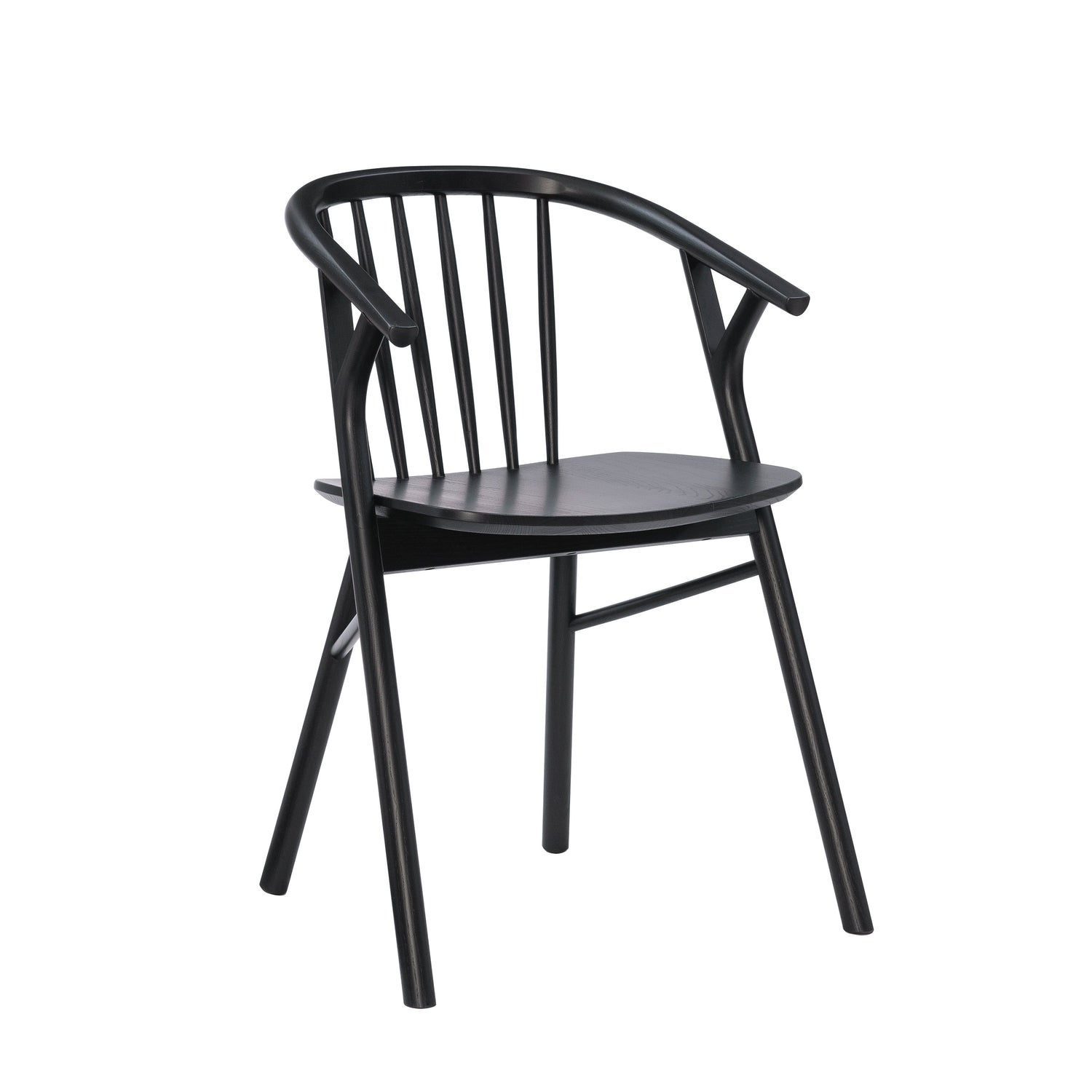 Wood grain and dramatic angles in the frame of this dining chair make for a lively and eccentric take on a farmhouse classic. The windsor back and saddle seat offer a grounding sense of tradition, while the streamlined silhouette brings in more modern elements. Constructed of solid beechwood for ensured strength and stability and given a black or natural lacquer finish for easy cleaning and extra protection, this piece will be with you for the long haul. It arrives fully assembled, ready to bring instant comfort and style to your kitchen or dining room.