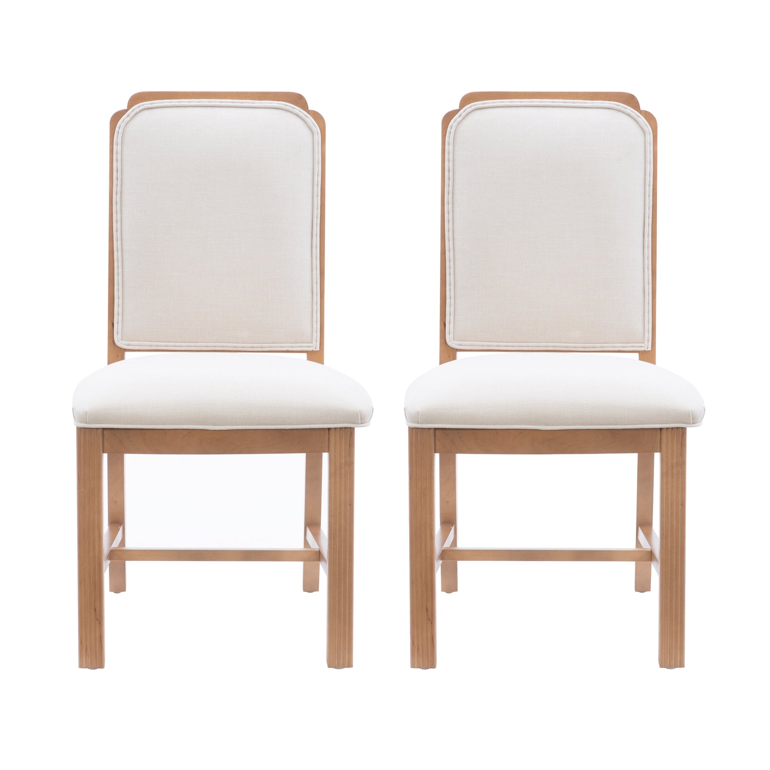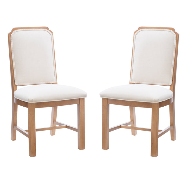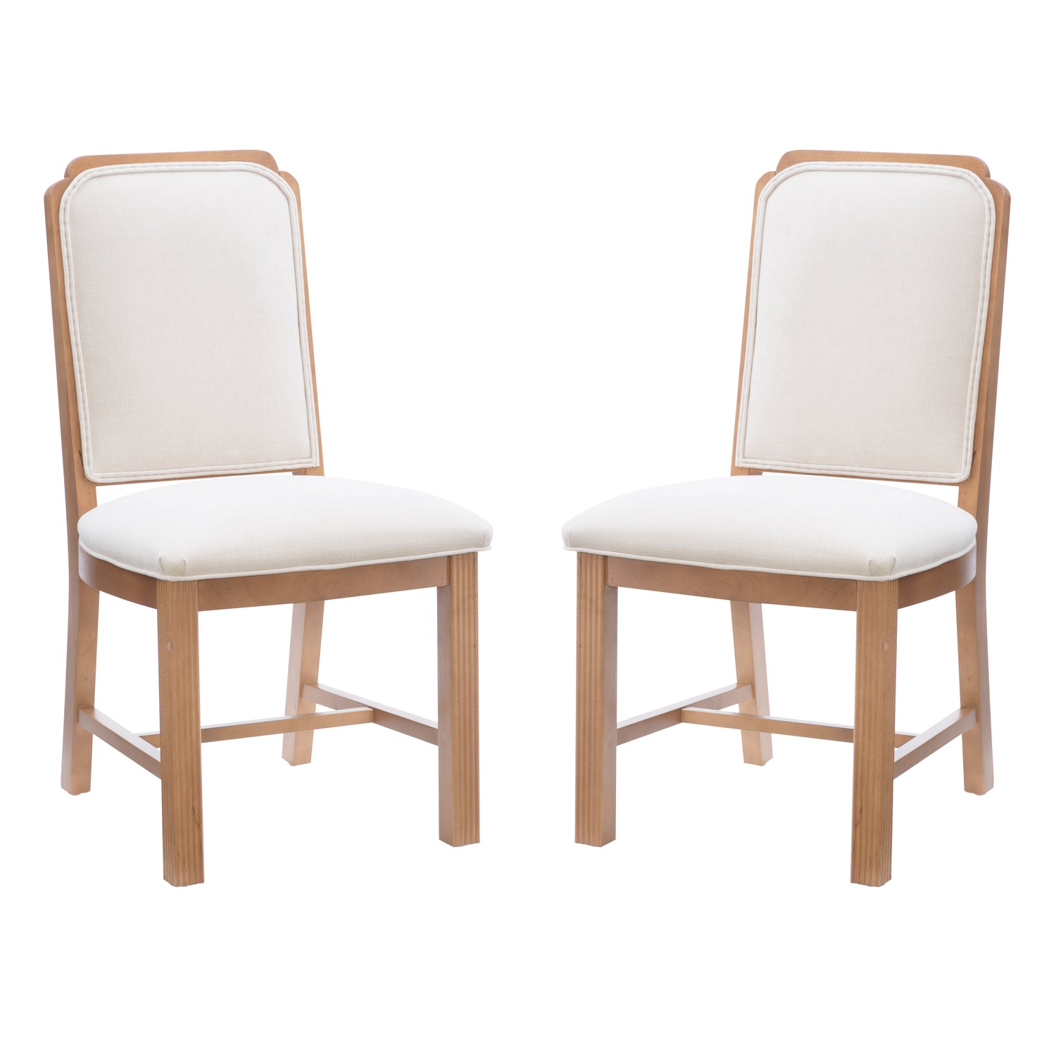 Comfort is at the forefront with this pair of heavily padded dining chairs. The cushioned seat and backrest are upholstered in a neutral linen look fabric that is a breeze to maintain and even easier to pair with your decor. Solid beechwood construction ensures strength and stability for years to come, while a clear lacquer coating offers extra protection against wear and tear. Stained in a rich brown finish, this set exudes a sense of poise and tradition without sacrificing the most important feature: being a chair that actually feels good to sit in.