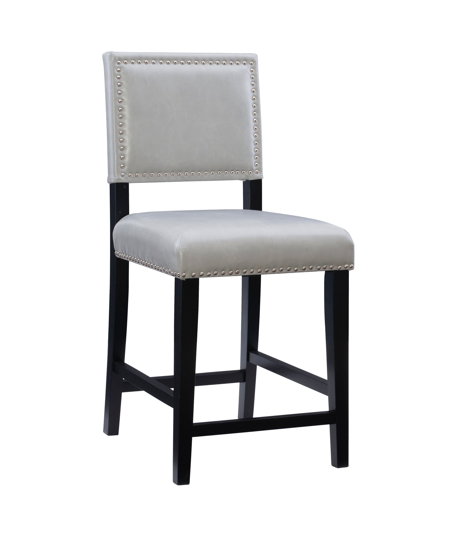Accent your kitchen with this transitional stool. The bar stool's 30" seat height works best with bars with heights of 40" to 43" H, and the counter stool's 23.7" seat height is perfect for counters 35" to 39" high. The solid wood frame is sleek yet sturdy with cherry stained or black painted legs and foot rails. Faux leather upholstery is a breeze to clean and comfortably cushioned. Antique bronze nail head trim adds a classic accent. Place several around your bar to make a stunning statement.