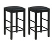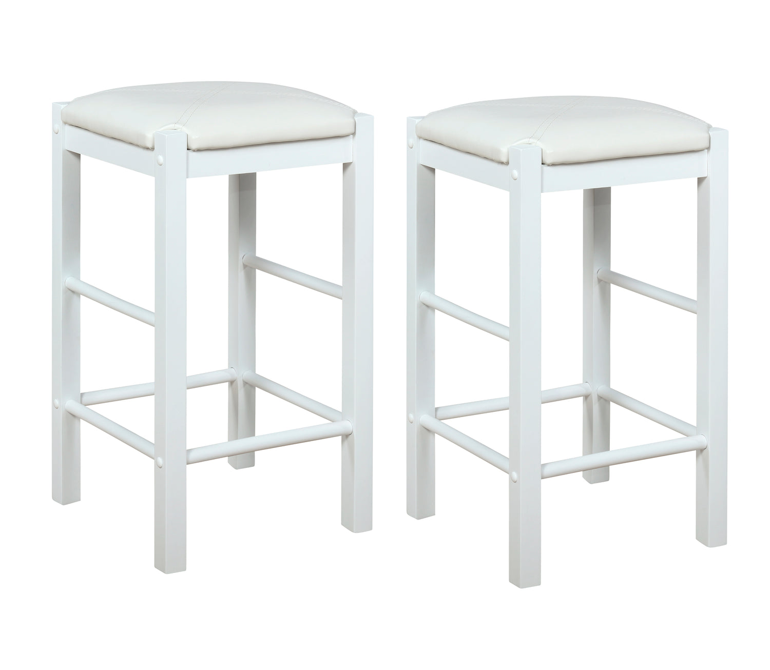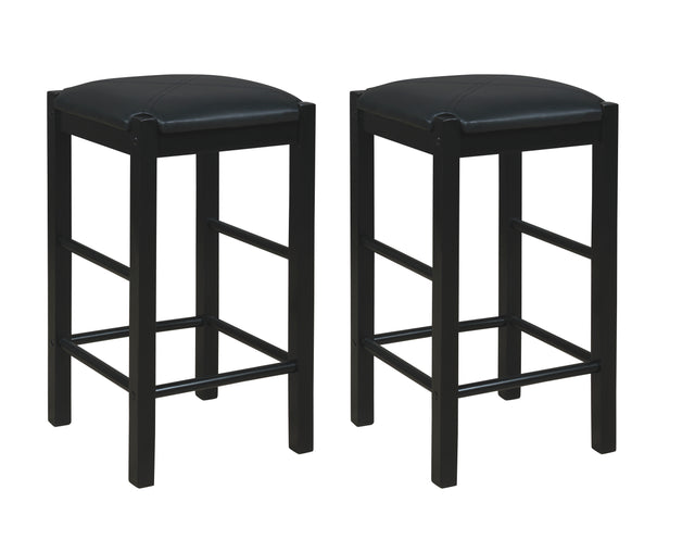Streamlined, sturdy, and built for real life—this pair of tavern stools delivers effortless function and polish to compact spaces. Featuring padded black or white faux leather seats with subtle cross stitching, they balance comfort with easy-care convenience—ideal for busy kitchens, pub-height tables, or extra seating on demand. The solid rubberwood frames are outfitted with footrests for sturdy support and finished in a matte black, espresso, or white paint that lends a sleek, modern look. At 25” high, the backless design tucks neatly under counters and high tops, keeping your layout open and clutter-free.