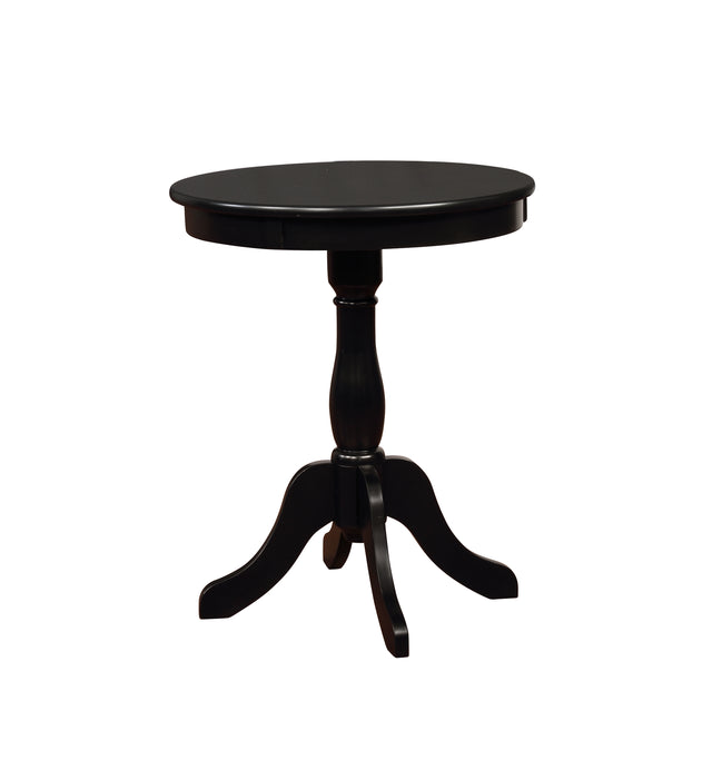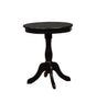 This contemporary black table is the perfect fit as a chairside table for any room. Features a round pedestal base, made from select hardwood veneers and solid wood material, and has contemporary styling with a bentwood skirt. Some assembly required.