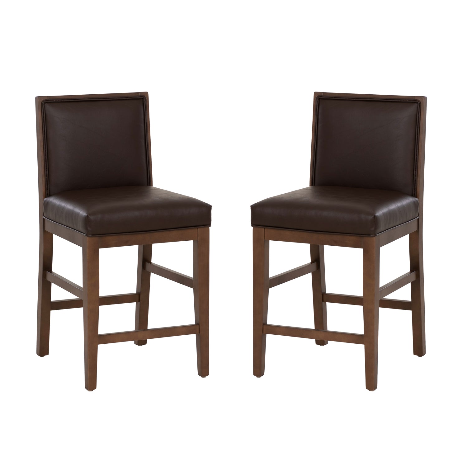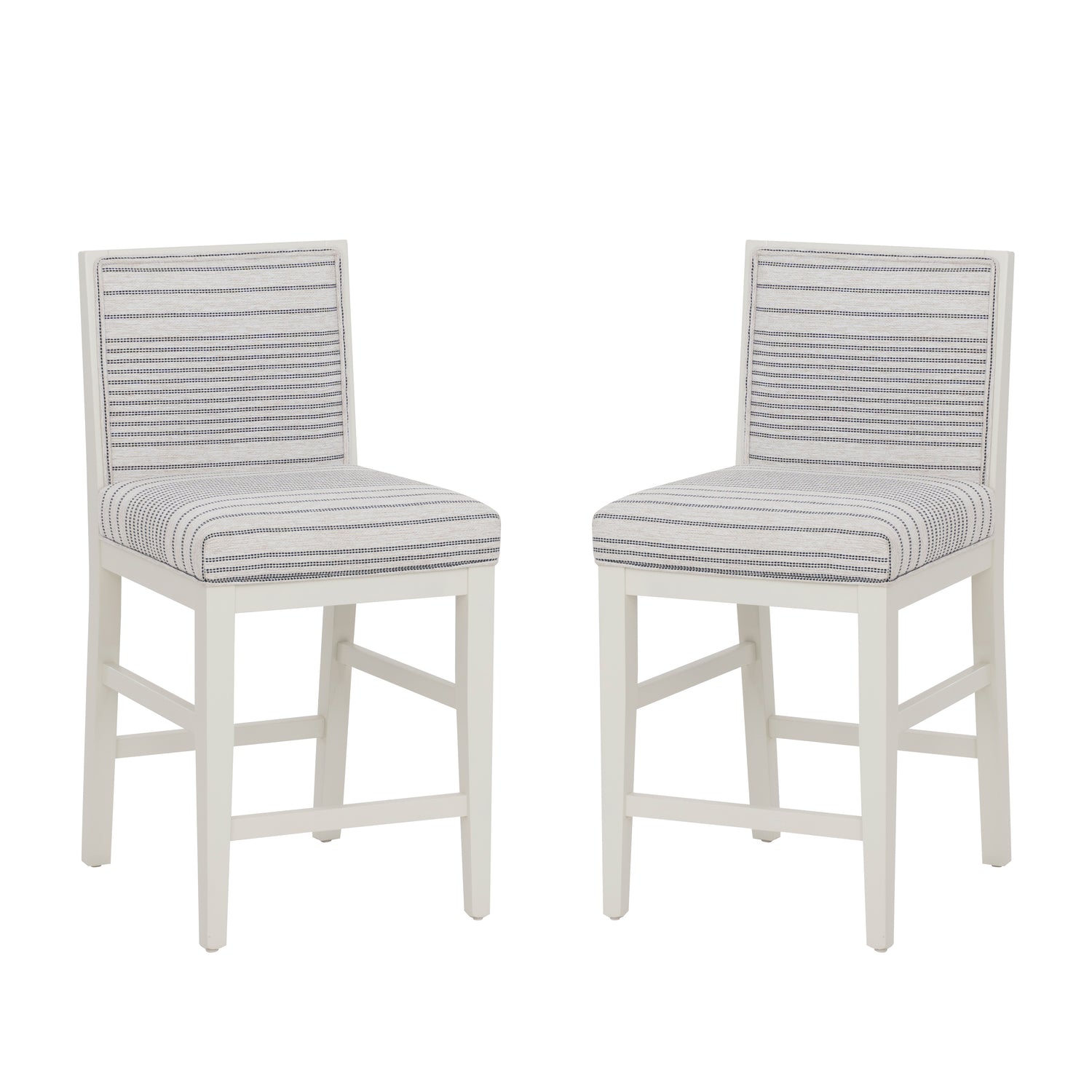 Refresh your kitchen island or breakfast bar with this set of 2 upholstered counter stools, proudly made in the USA from solid maple wood. The painted frame brings a crisp, clean foundation while the woven polyester upholstery adds rich color and textural contrast. Designed with a padded seat and supportive backrest, each stool provides comfort you’ll appreciate morning to night. With a 300 lb. weight capacity and fully assembled convenience, this set delivers style, strength, and everyday ease—all in one perfect pair.