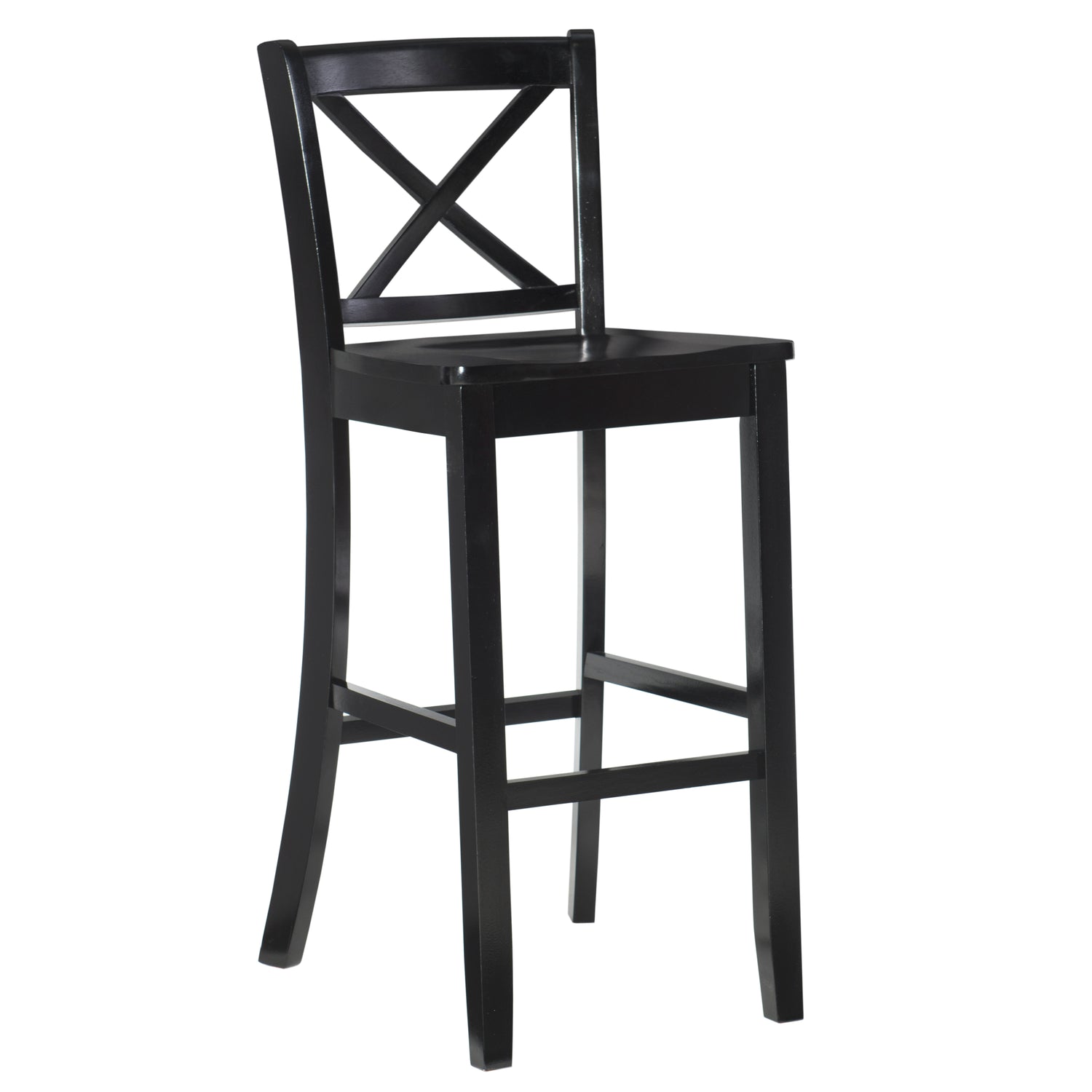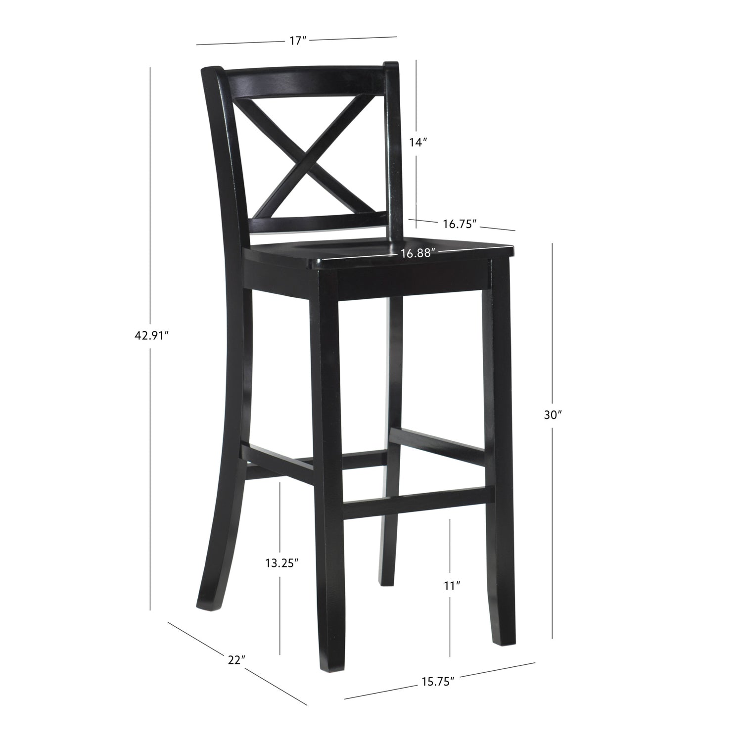The elegance and unique style of this X Back Bar Stool will carry throughout your kitchen dining or home pub area. Solid construction and quality craftsmanship have made this stool both sturdy and attractive. It fits beautifully into a casual or formal decor. Foot rails provide stability and comfort. The 30" seat height works great with counters 41" to 43", and the counter stool's 24" seat height is perfect for counters from 35" to 39".