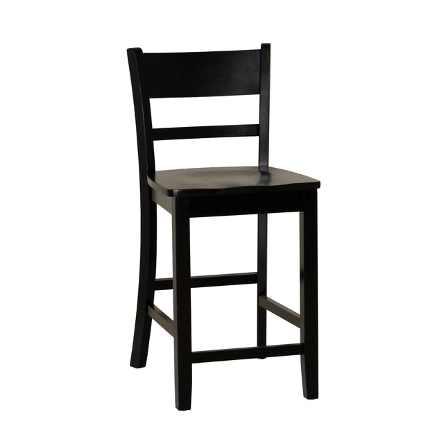 Introducing our sleek black or walnut counter stool, a perfect blend of style and functionality for your kitchen or bar area. Crafted with precision from rubberwood and plywood, this stool combines durability with contemporary design. The addition of an extra back rail provides additional support and comfort while you relax. Solid construction and quality craftsmanship have made this stool both sturdy and attractive. It fits beautifully into a casual or formal decor. Foot rails provide stability and comfort. The counter stool's 24" seat height is perfect for counters from 35" to 39".