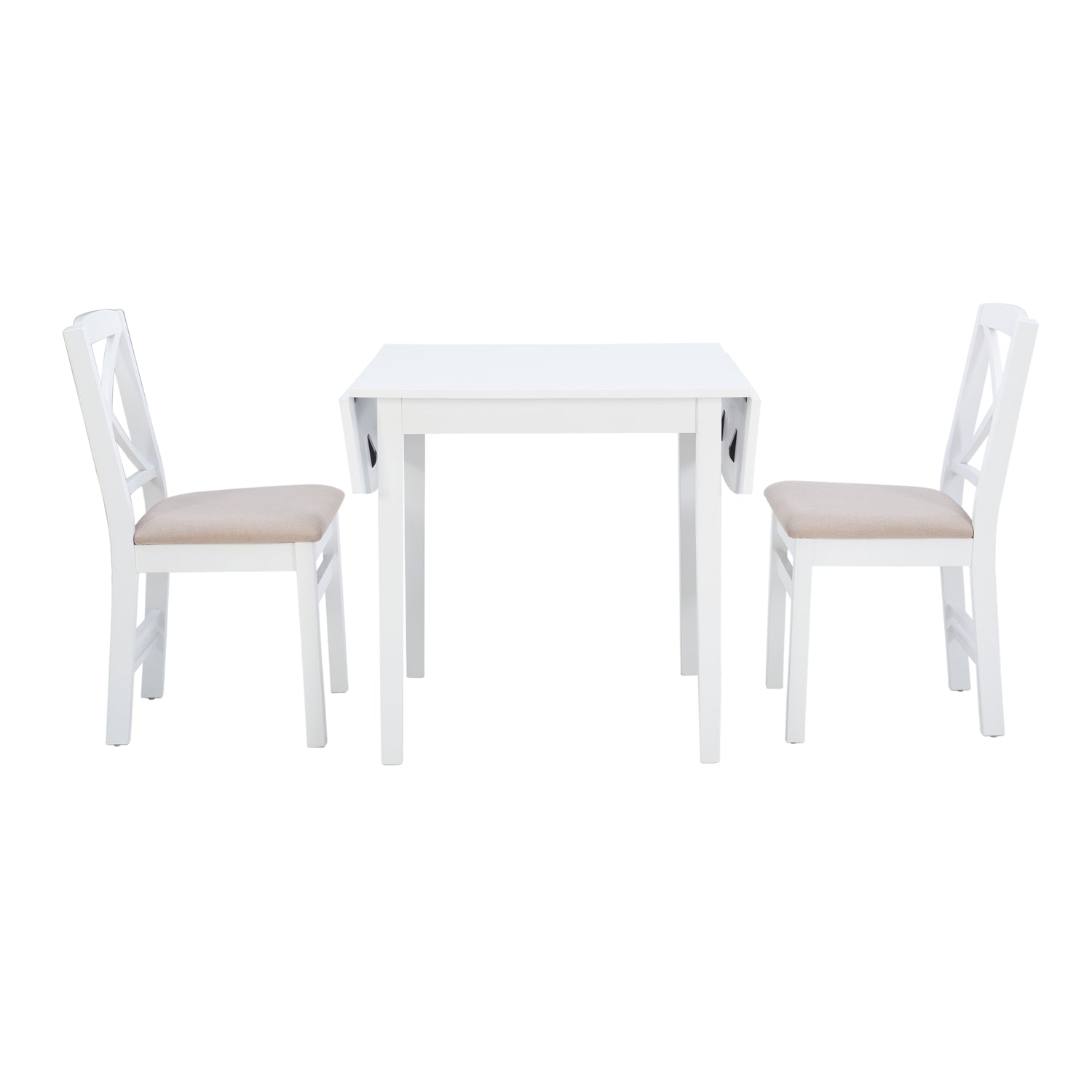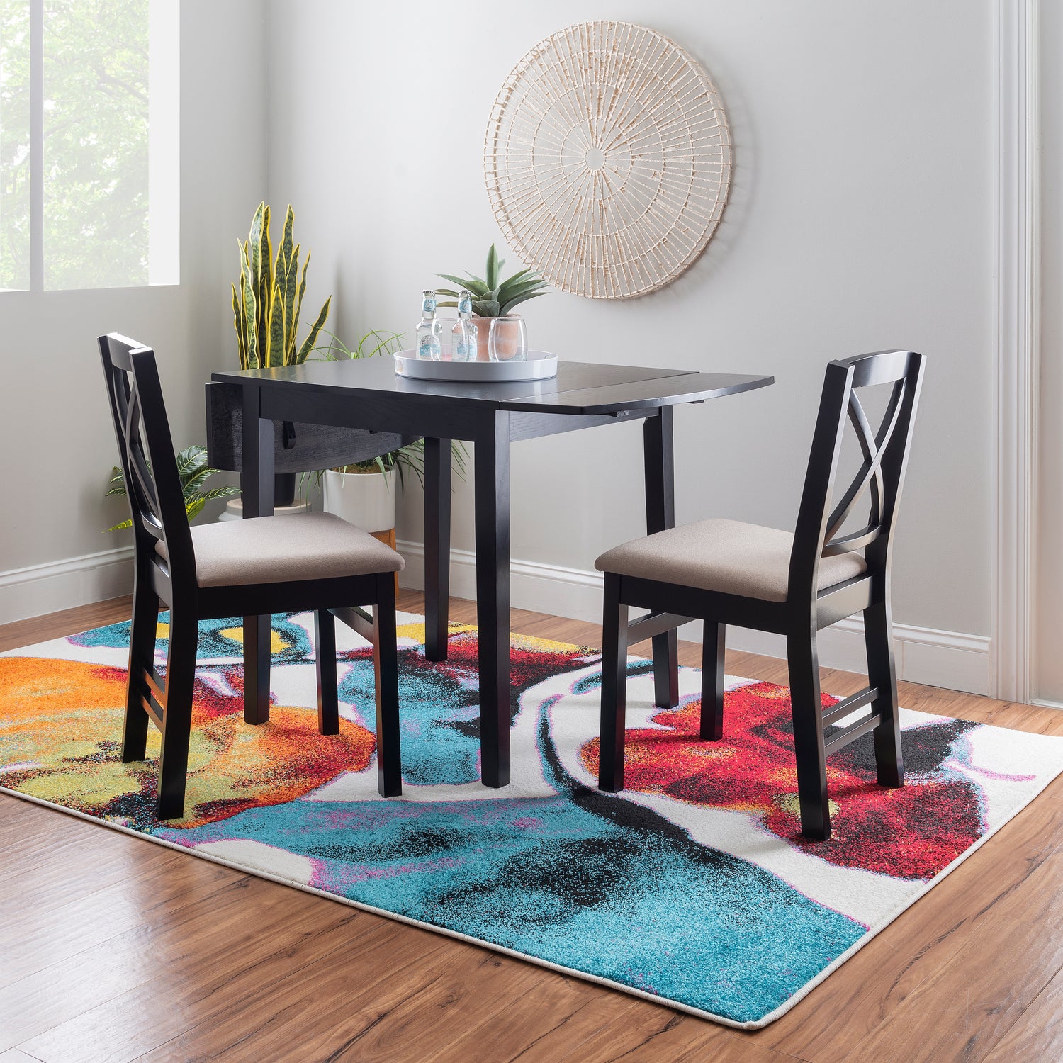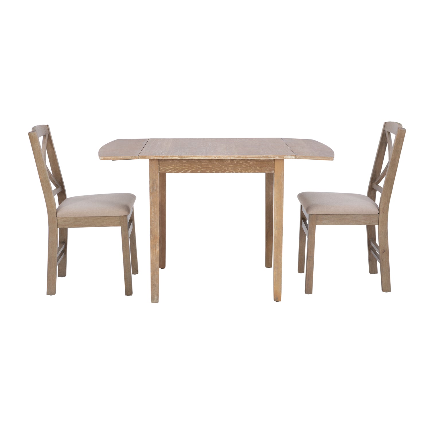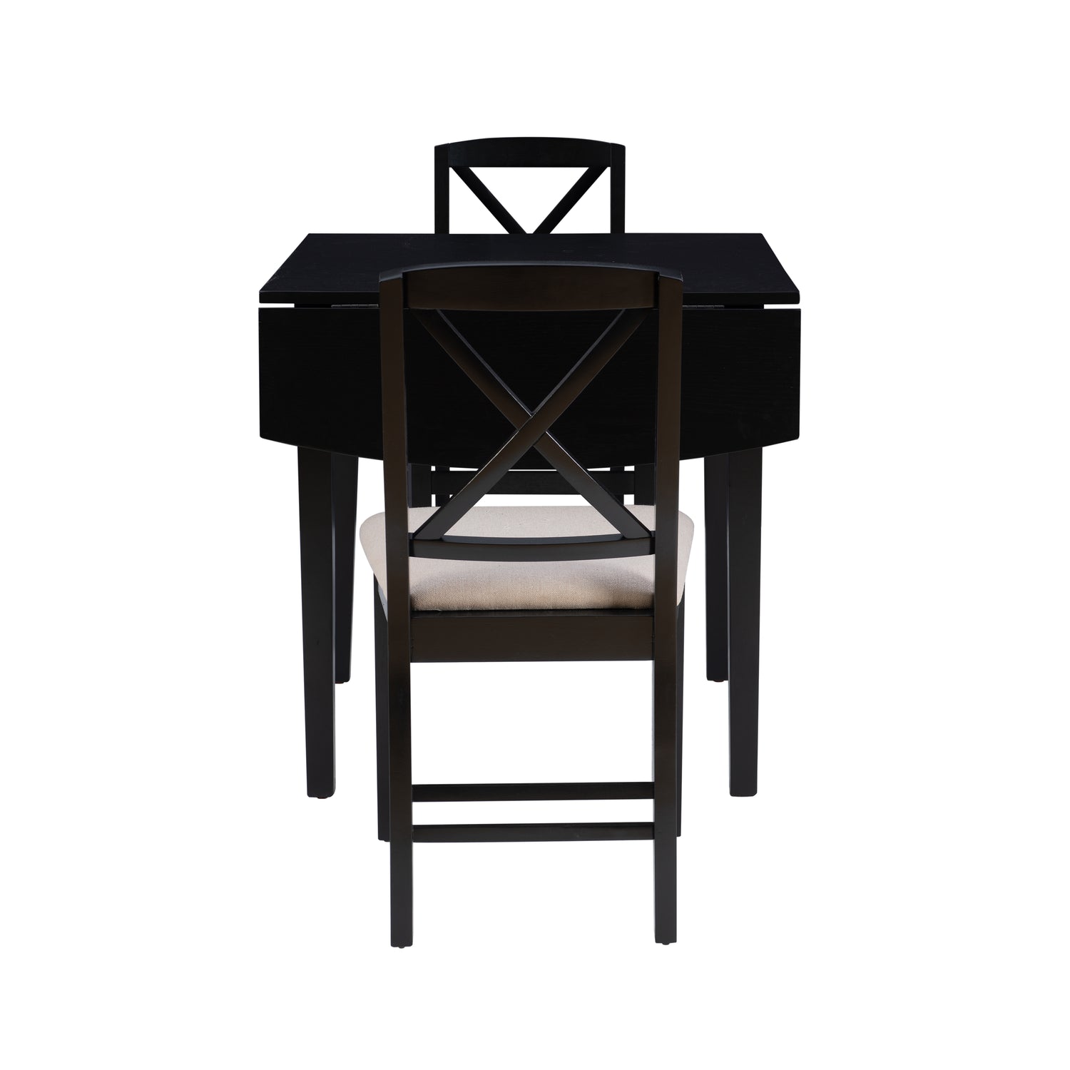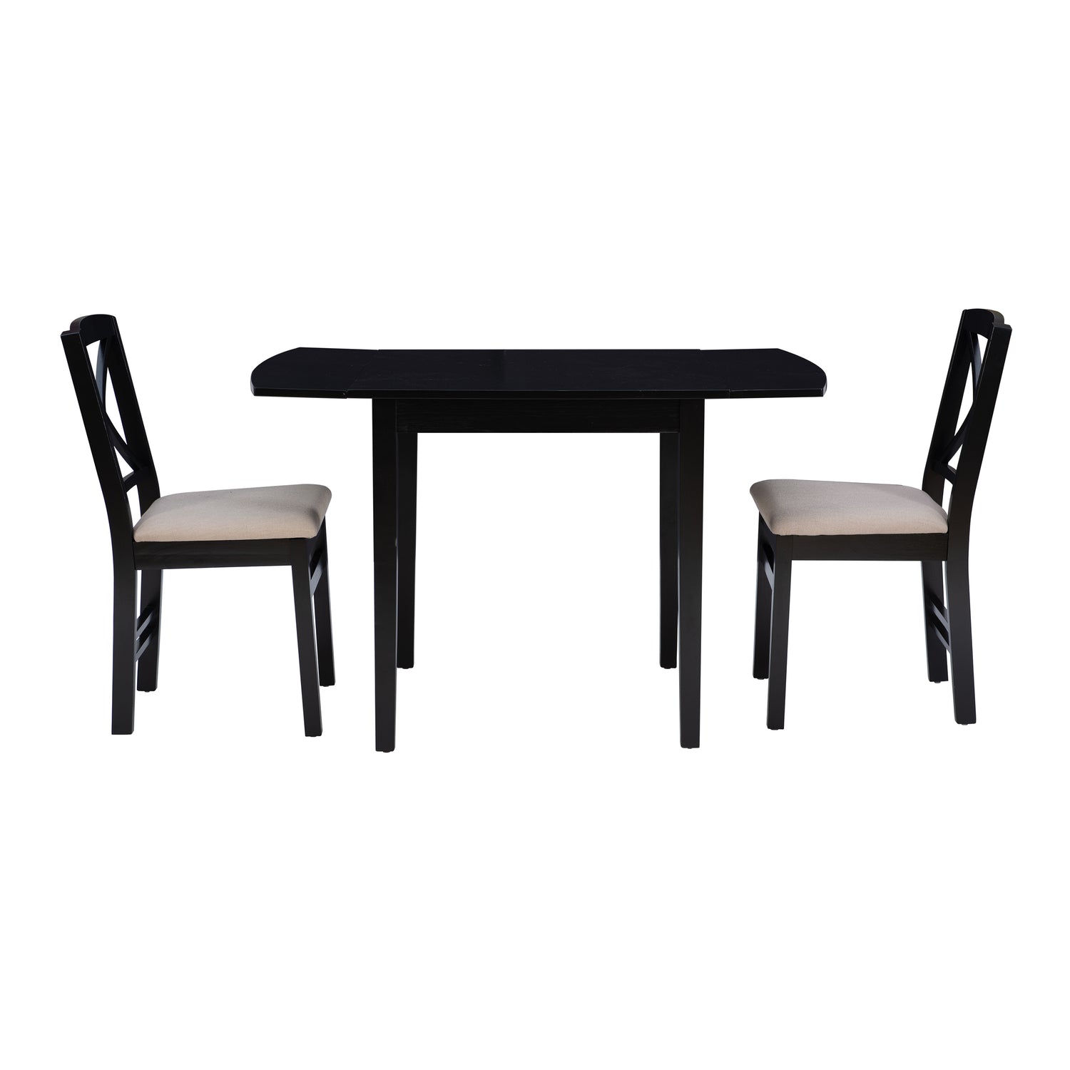 Bring your family together for a relaxing meal with the rustic style of this 3 piece dining set, which features a versatile 48-inch drop leaf design table, and 2 cross-back dining chairs. Inspired by a modern farmhouse design the wholesome black finish promotes a homey ambiance whether at the dinner table or in your casual entertainment area. Clean lines and solid wood construction ensure that this table and chairs are durable enough for a busy kitchen, yet elegant enough for a formal setting. This comfortable set is crafted with long-lasting quality that easily complements both suburban and country home decor styles.