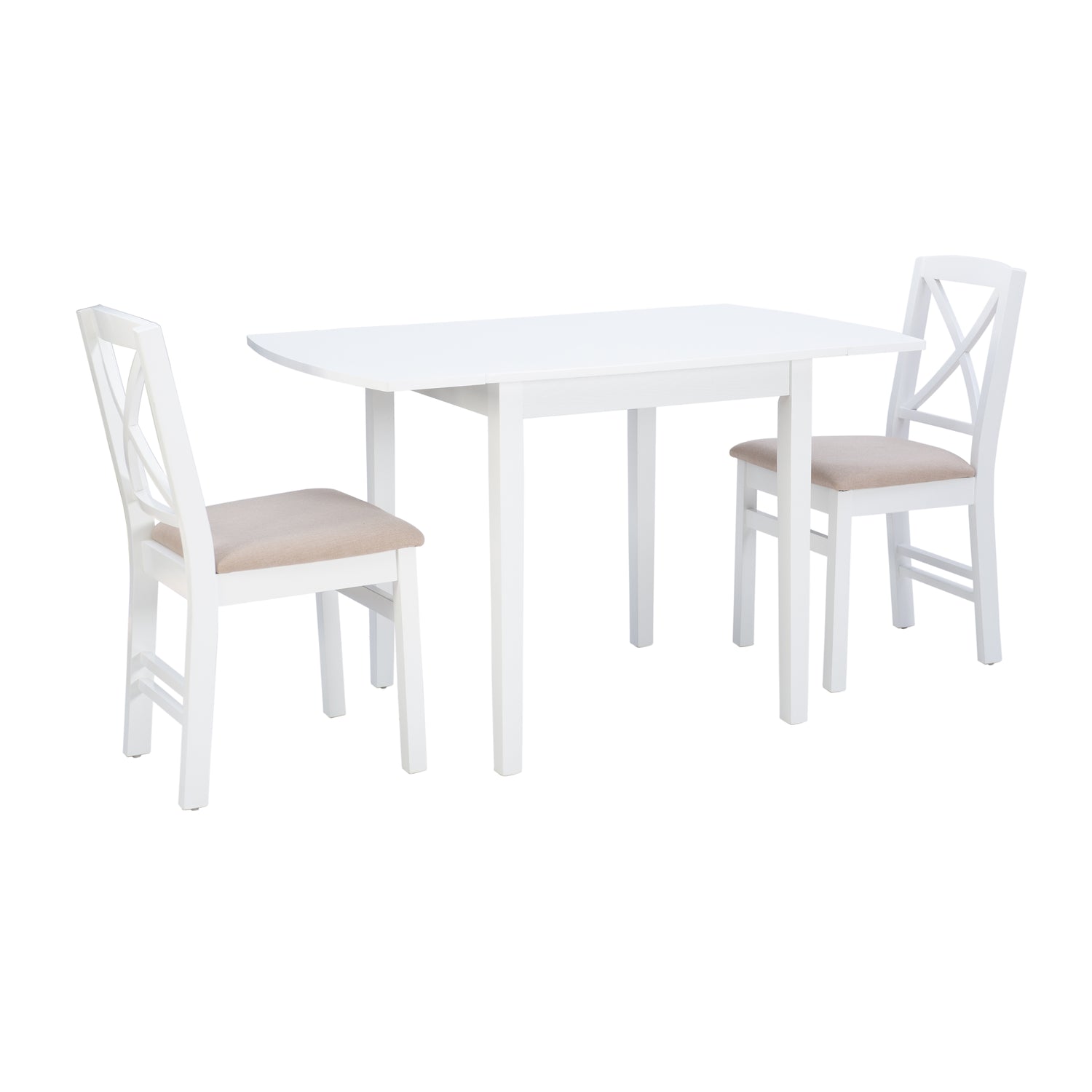 • Matching X-Back Chairs: This dining set includes 2 matching X-back chairs that fit perfectly under the table.