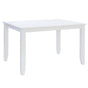 Lay the groundwork for family meals and memorable gatherings with this rectangular dining table. The sturdy frame is constructed of solid wood and features a smooth white finish that pairs seamlessly with just about any decor. Whether you place it in a farmhouse kitchen, modern dining room, or as a workspace in your home office, it's sure to add a touch of understated elegance. Designed to seat 4 comfortably, this piece is also available in a full dining set with an array of matching chairs.
