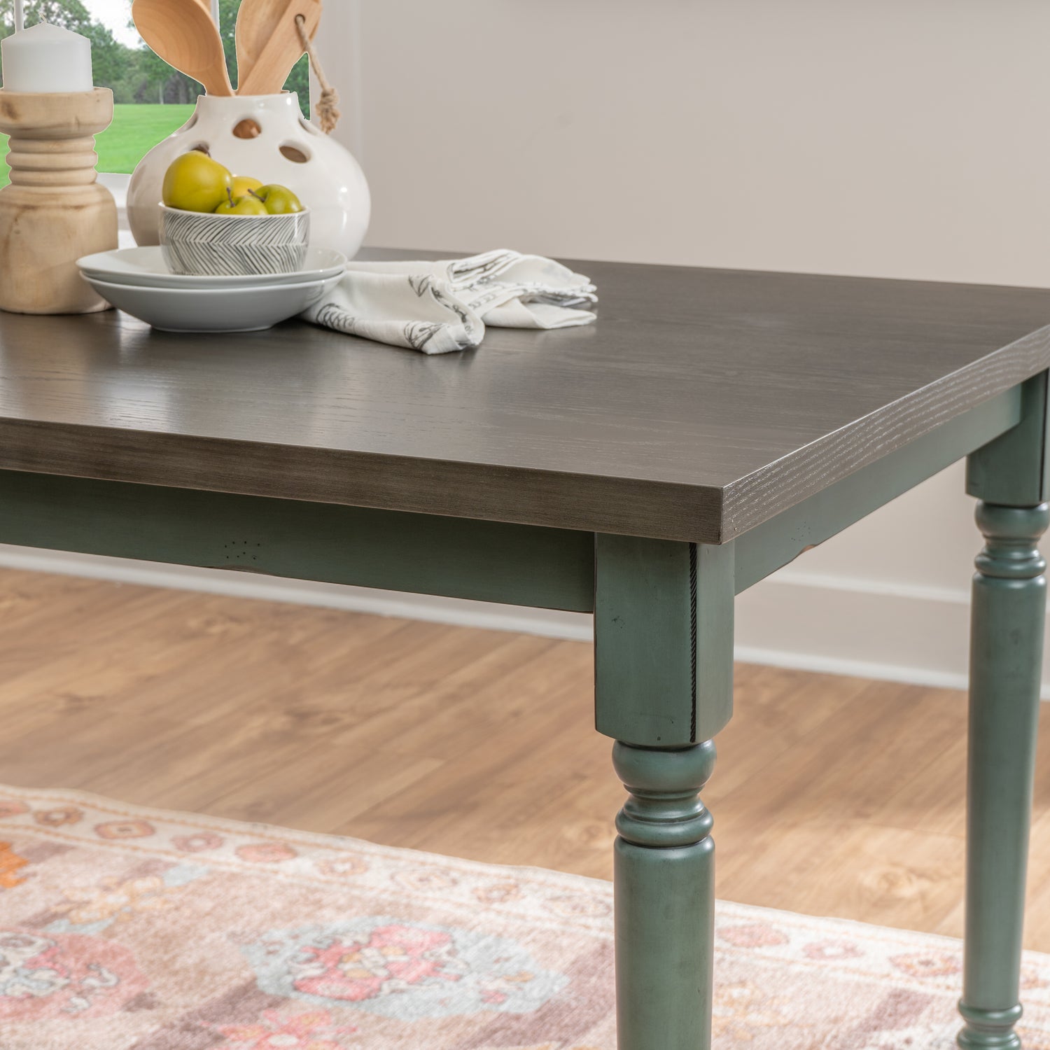 Bring casual farmhouse charm to your dining space with this timeless table, designed to blend effortlessly into any decor. A durable wood construction paired with a smooth glazed finish highlights the natural character of the grain. Sculpted, turned legs add classic detail, while the generous tabletop comfortably accommodates 4–6 guests for dining or game night. Available in multiple finishes to match your style.