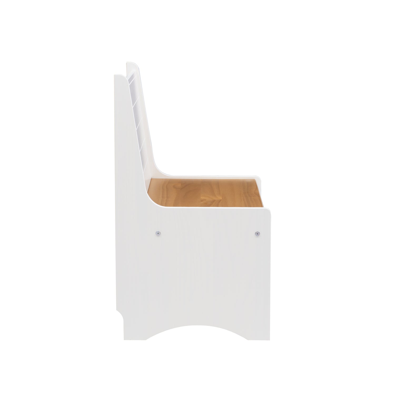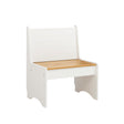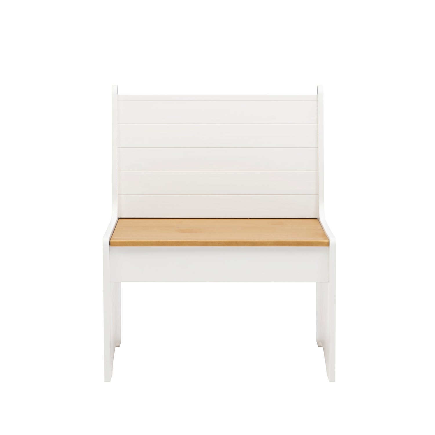 This small bench will bring a refined rustic style to any room in the house. The compact design provides a wealth of options for tight spaces or as part of a more oversized nook set with matching pieces. The solid pine construction features a backrest with horizontal slats. The white painted frame, and a natural finish on the seat, brings the beautiful woodgrain to the forefront. Add to your storage needs without sacrificing space; the benchtop opens on hinges to reveal a hidden compartment, great for stowing away linens and runaway items.