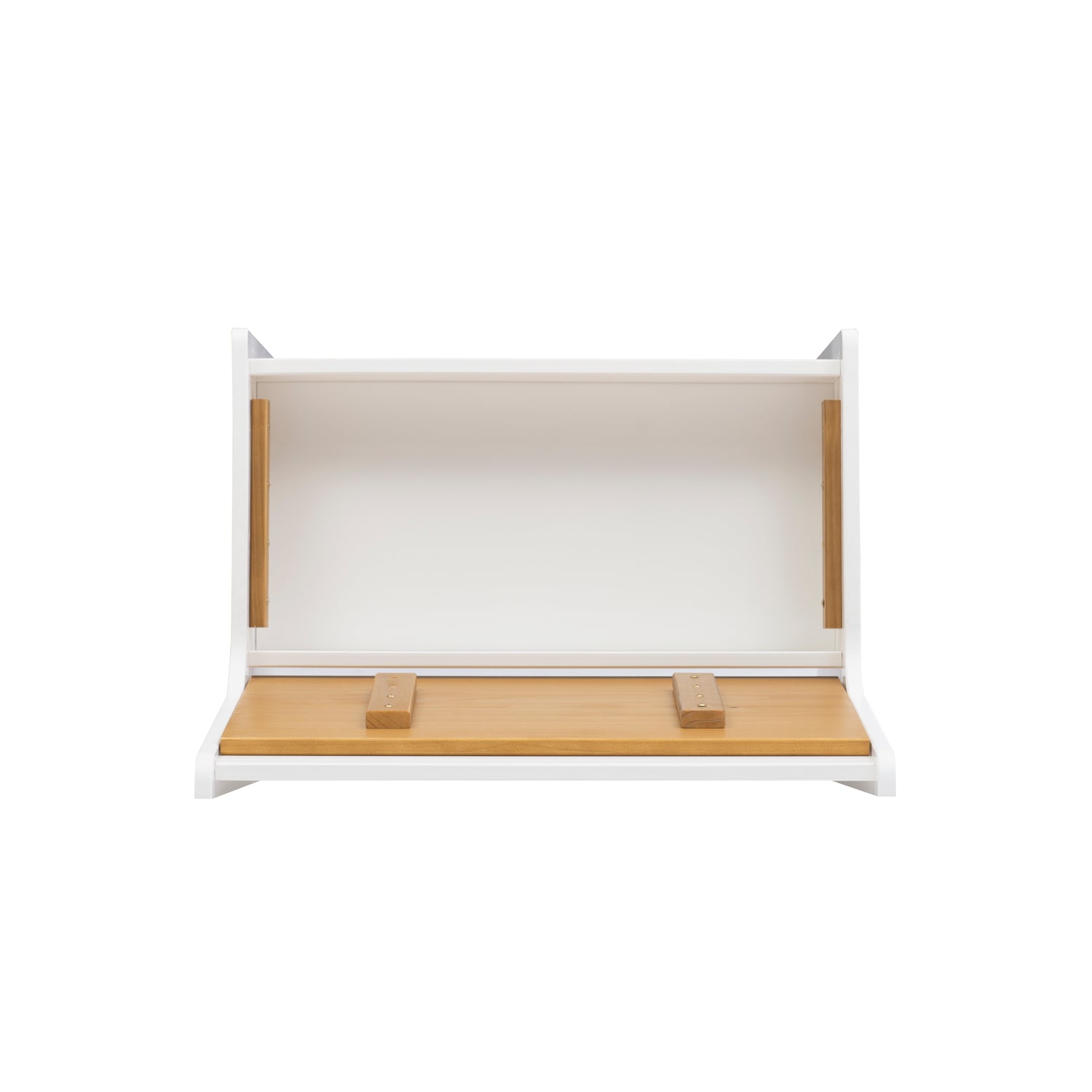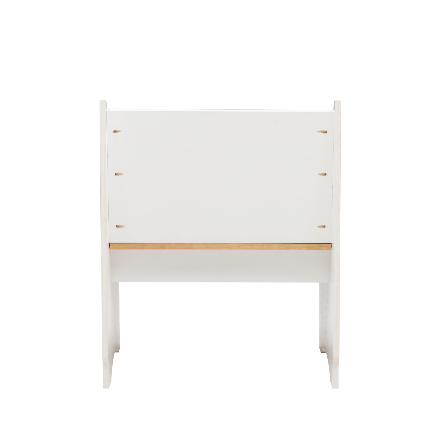 - White painted finish and a natural finish on the seat show knots and patterns in the woodgrain
