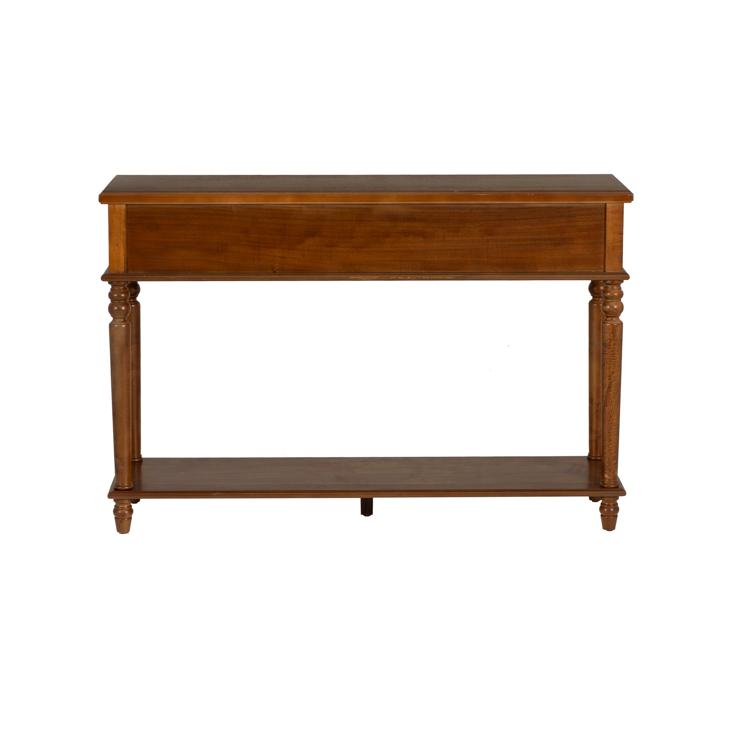 Crafted with care and designed for versatility, this console table brings a grounded, farmhouse sensibility to transitional spaces. Made with solid acacia wood legs and an acacia veneer top, that highlights the wood’s natural grain for a soft, timeworn look. Turned legs and antiqued drawer pulls nod to traditional design, adding timeless elegance. Two roomy drawers offer discreet storage, while the open lower shelf is perfect for baskets, books, or seasonal décor. Measuring 48" wide, 14" deep, and 32" high, it’s ideally scaled for entryways, behind sofas, or narrow living room walls.