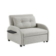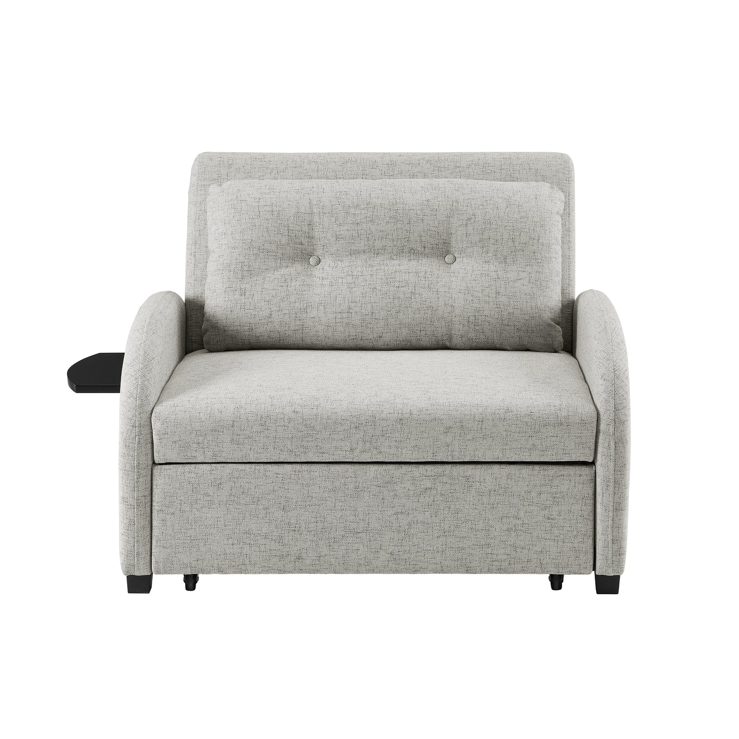 Sink into all-day comfort with this wide convertible chair bed, your versatile go-to for lounging, napping, or hosting overnight guests. Upholstered in soft grey polyester, it starts as a generously sized chair and transforms into a Faux Leatherllout bed with a smooth Faux Leatherll handle. Curved arms create a gentle arch that softens the silhouette while supporting relaxed reclining, and the included tufted pillow adds extra comfort or can be removed for a streamlined look. A built-in folding tray on the side keeps drinks, books, or devices within easy reach, making this piece as functional as it is cozy.