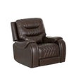 Upgrade your relaxation with our Power Recliner in Brown Faux Leather, a perfect mix of comfort, style, and functionality. Built with a sturdy plywood frame and a 350 lb weight capacity, it's designed for durability while offering a sleek look with rich faux leather upholstery and elegant crossed stitching on the seat and armrests. Beyond its refined appearance, this recliner is packed with practical features, including a built-in USB port to keep your devices charged, gliding feet to protect your floors, and plush cushioning for ultimate comfort. Whether you're watching your favorite show, reading, or simply unwinding, this recliner promises to be your favorite spot to relax.