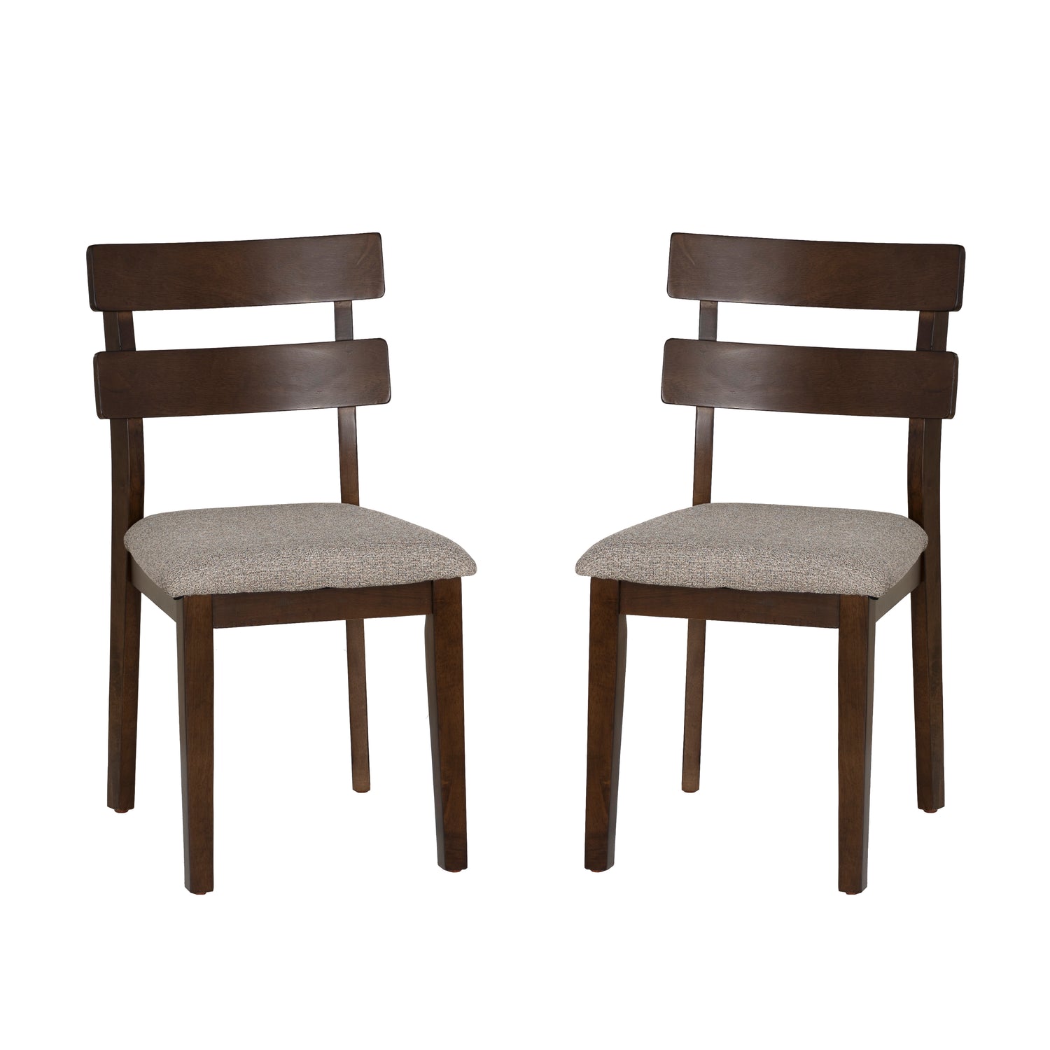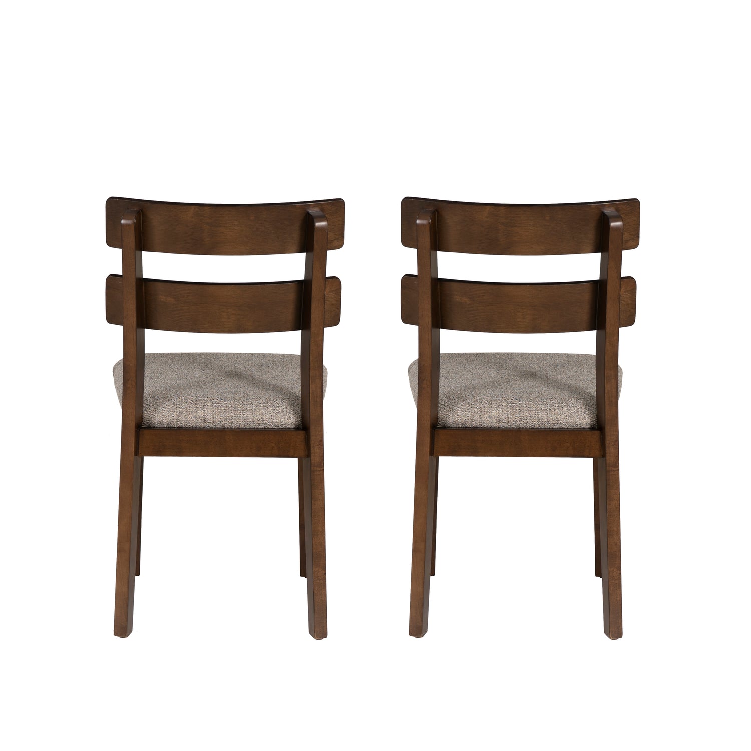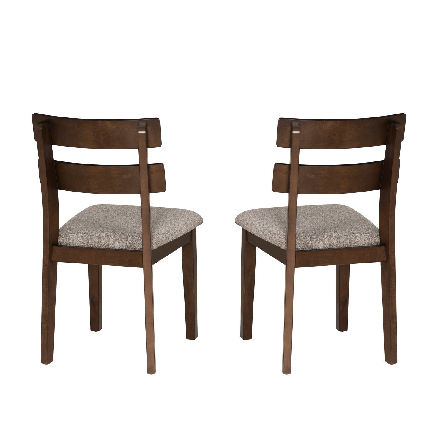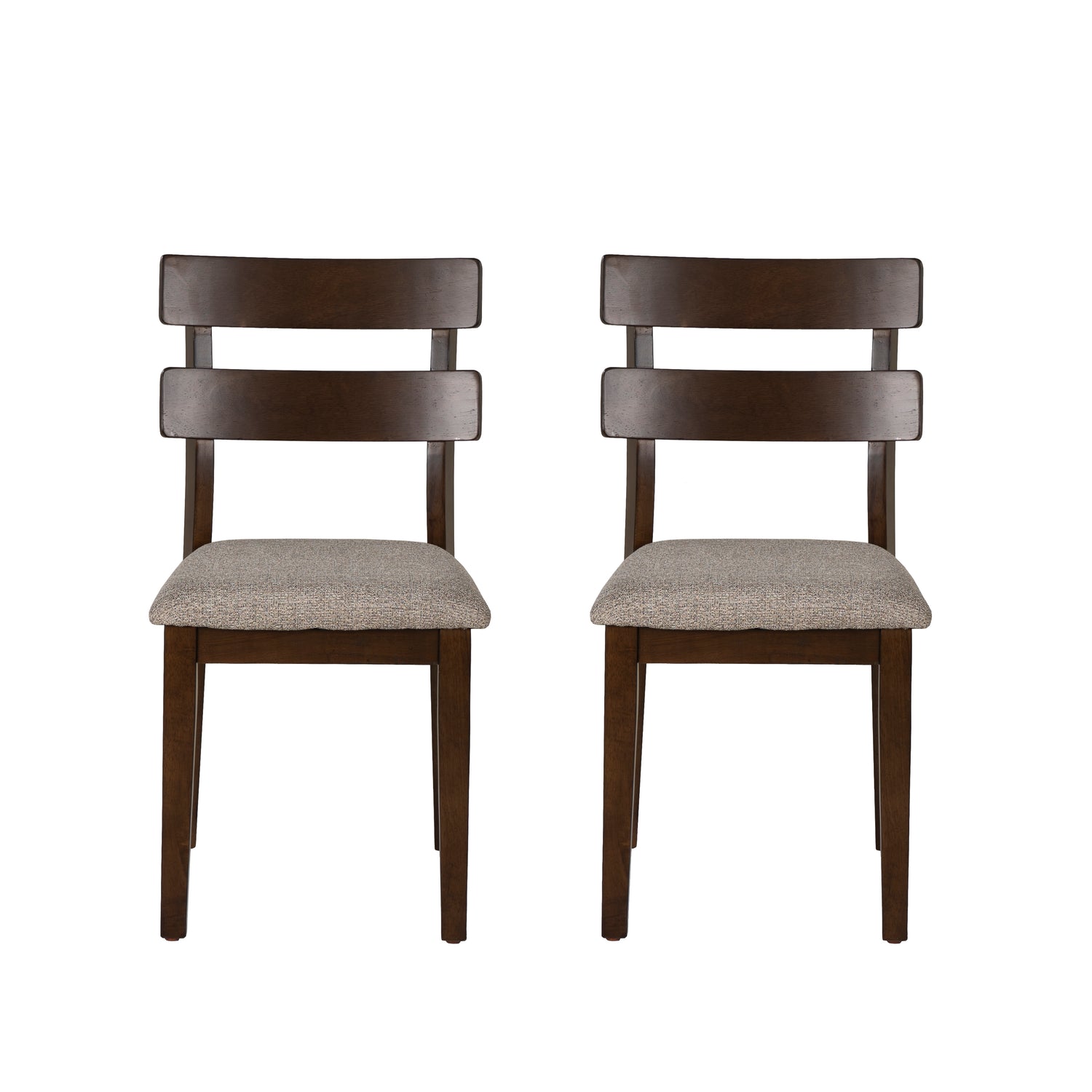 Plucked straight out of cottage daydreams, this endearing side chair is a farmhouse favorite. The sturdy frame of solid wood is finished in a rich brown or natural stain that highlights beautiful knots and patterns in the woodgrain. Gentle curves in the wide ladder backrest offer ergonomic support, while the padded seat is wrapped in soft grey heathered upholstery. Aside from looking and feeling great, this performance-grade fabric is made to resist and release stains, moisture, and odors, maintaining a like-new appearance through regular use. Whether positioned at a dining table or as a standalone accent piece, this versatile chair will make any space feel more inviting. Also available in full sets with matching chairs, bench, and dining table.