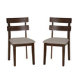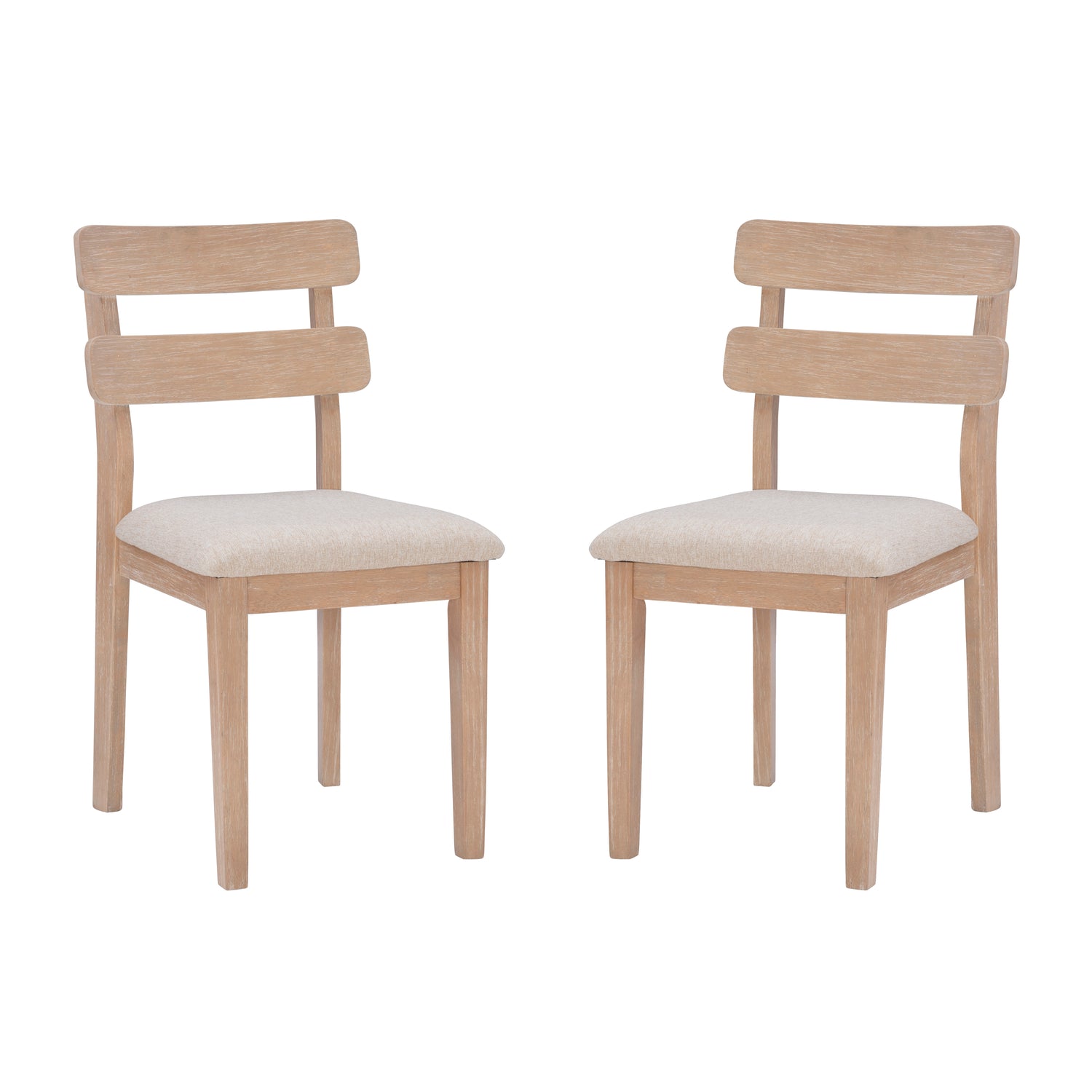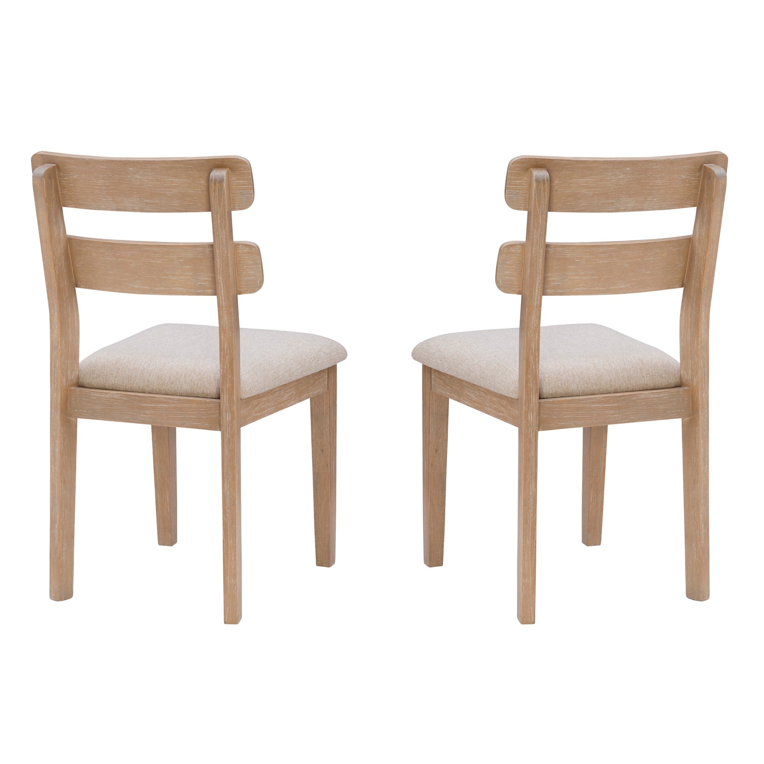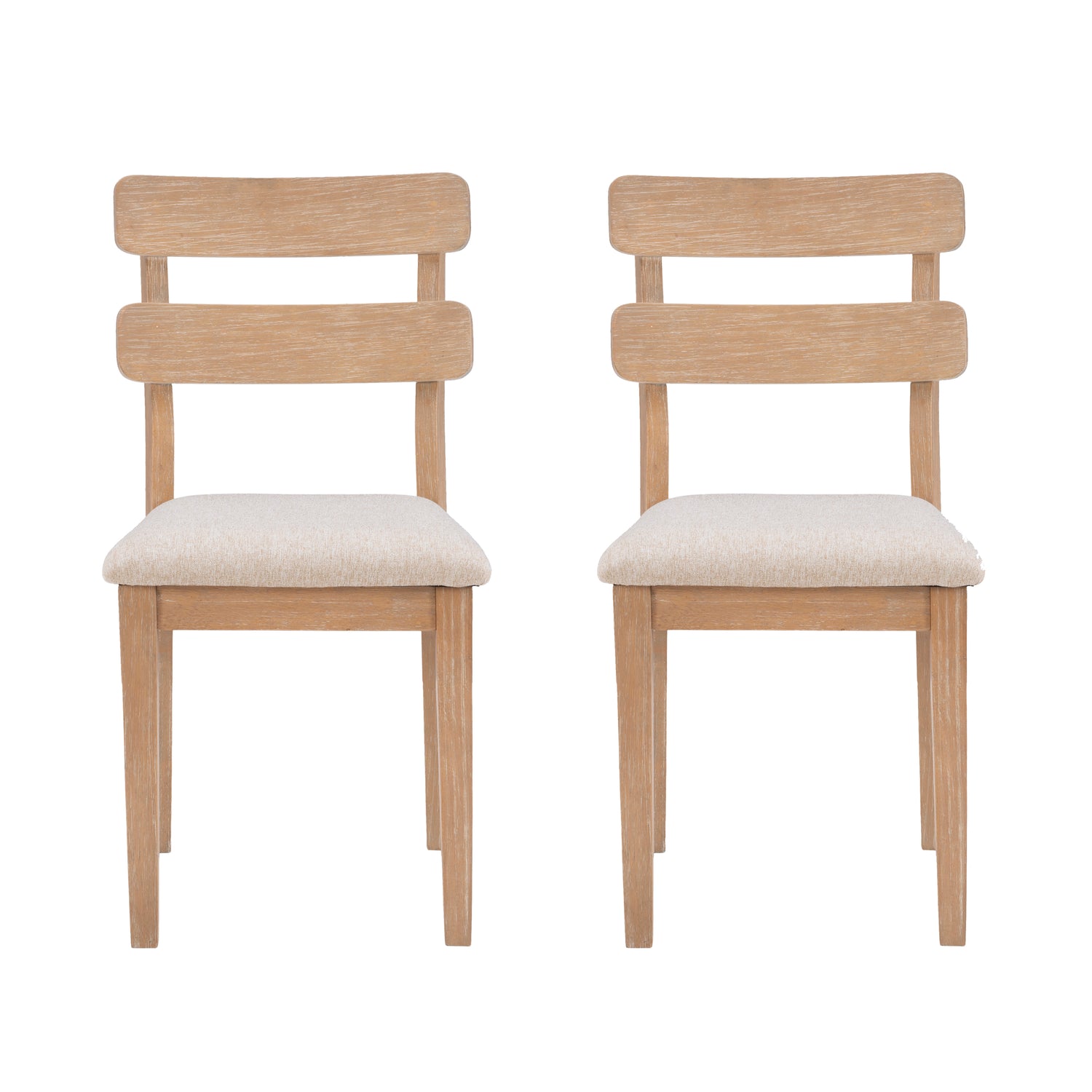 Plucked straight out of cottage daydreams, this endearing side chair is a farmhouse favorite. The sturdy frame of solid wood is finished in a rich brown or natural stain that highlights beautiful knots and patterns in the woodgrain. Gentle curves in the wide ladder backrest offer ergonomic support, while the padded seat is wrapped in soft grey heathered upholstery. Aside from looking and feeling great, this performance-grade fabric is made to resist and release stains, moisture, and odors, maintaining a like-new appearance through regular use. Whether positioned at a dining table or as a standalone accent piece, this versatile chair will make any space feel more inviting. Also available in full sets with matching chairs, bench, and dining table.