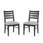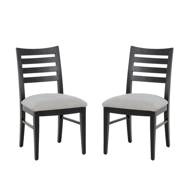 Make a bold yet timeless statement at your dining table with this set of 2 side chairs, crafted in the USA from solid maple wood. The sleek black painted frame creates strong contrast against the padded seat, which is upholstered in a beige and blue woven polyester for subtle texture and style. A classic ladder-style back adds support and a touch of traditional charm, while the fully assembled construction makes setup a breeze. Designed to hold up to 300 lbs. per chair, this set brings quality, comfort, and confidence to every meal.
