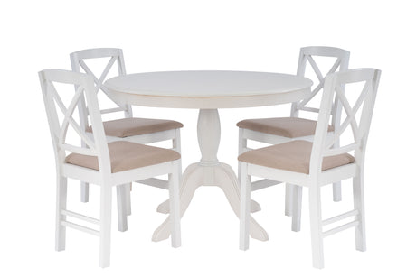 Norah White Pedestal with 4 White Torino Chairs