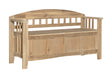 This beautifully crafted wooden storage bench combines classic design with practical functionality. Featuring a sturdy construction with clean lines and traditional paneled details, this versatile piece showcases natural wood grain that adds warmth to any space. The bench includes a hinged lift-top seat that reveals generous storage space beneath, and the slatted backrest design creates an open, airy feel while maintaining structural integrity. Perfect for entryways, bedrooms, or living areas, this timeless storage solution seamlessly blends seating comfort with essential organization needs.