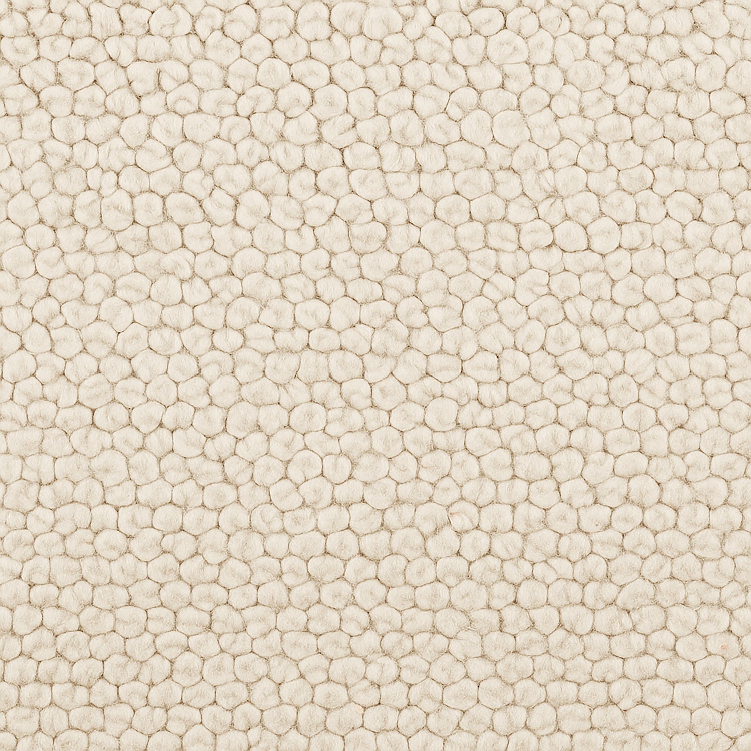 - White shaggy cushion is covered in a fabric handwoven with a pit loom