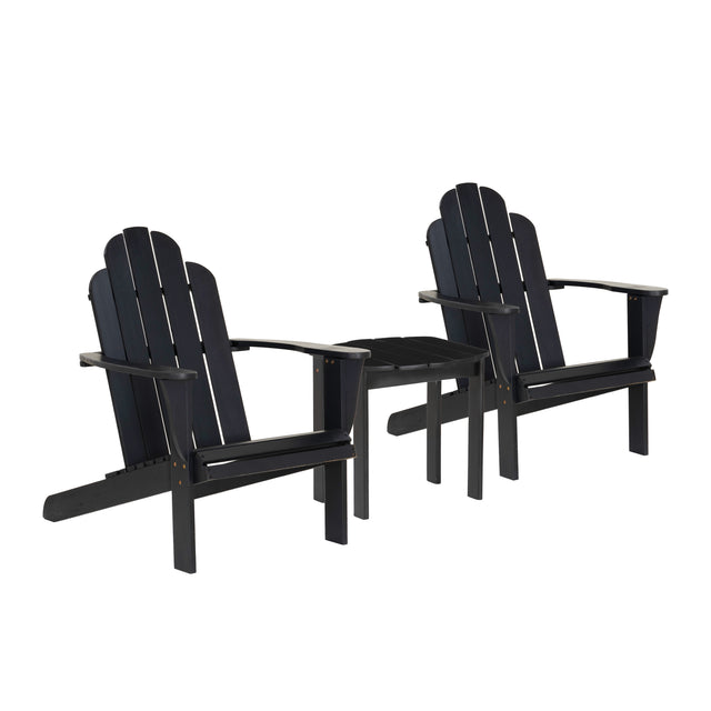 This classic Adirondack chairs and side table set brings timeless outdoor comfort to any patio, deck, or garden space. Featuring the iconic fan-back design with wide, flat armrests and a gently reclined seat, the chairs are engineered for ultimate relaxation. The black finish provides a sophisticated look that complements any outdoor decor while resisting weather and UV damage. The matching side table perfectly complements the chair, providing convenient space for drinks, books, or outdoor essentials. Built with durable construction and traditional craftsmanship, this set combines classic American design with modern materials for years of reliable outdoor enjoyment.