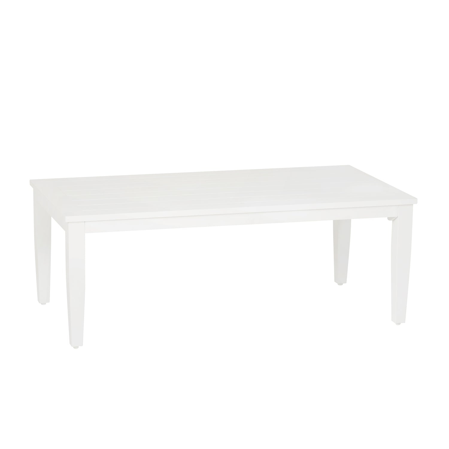 Bring a relaxed coastal feel to your outdoor space with this versatile coffee or side table. Built from lightweight yet durable aluminum in a white powder-coated finish, it serves as a sturdy anchor that’s easy to reposition as needed. The slatted tabletop evokes breezy, beachside style while allowing rain to drain through effortlessly. Tapered legs and clean lines strike a balance between polished and casual, while the generous surface is perfect for everything from evening cocktails and shared hors d’oeuvres plates to large decorative accents. A natural fit for patios, decks, or tucked-away garden corners.