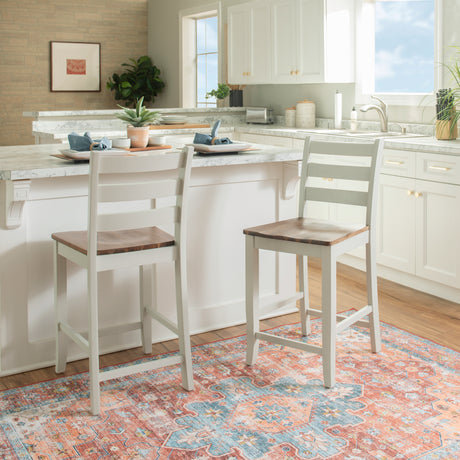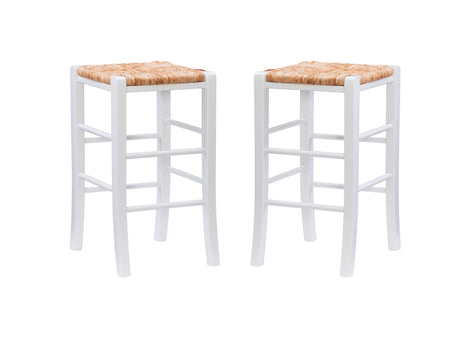 Valley White Counter Stools With Wood Seat (Set of 2)