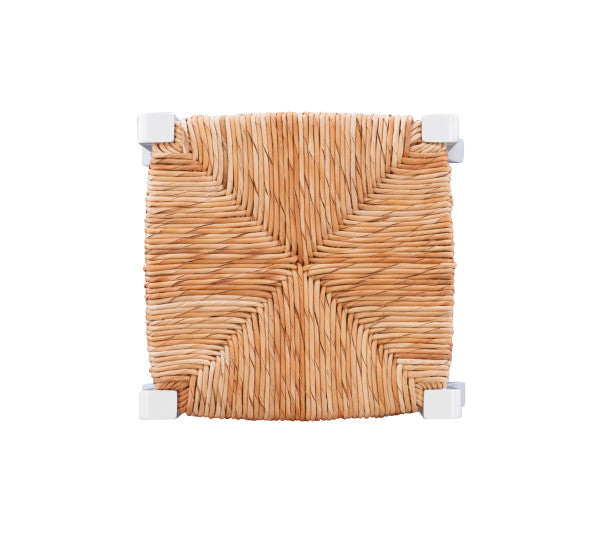 - Natural handwoven rush seat evokes a traditional farmhouse aesthetic