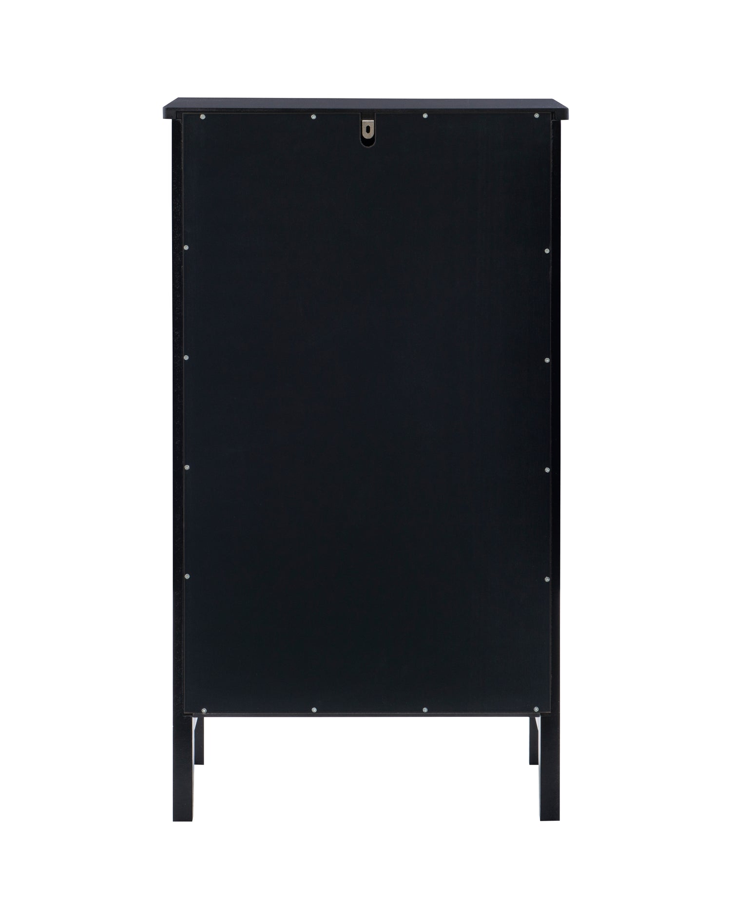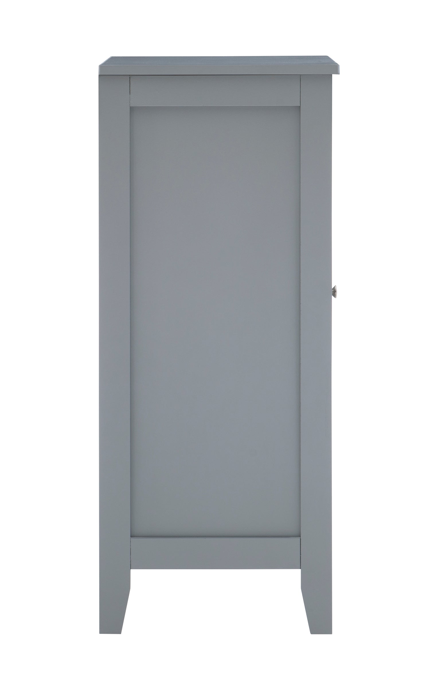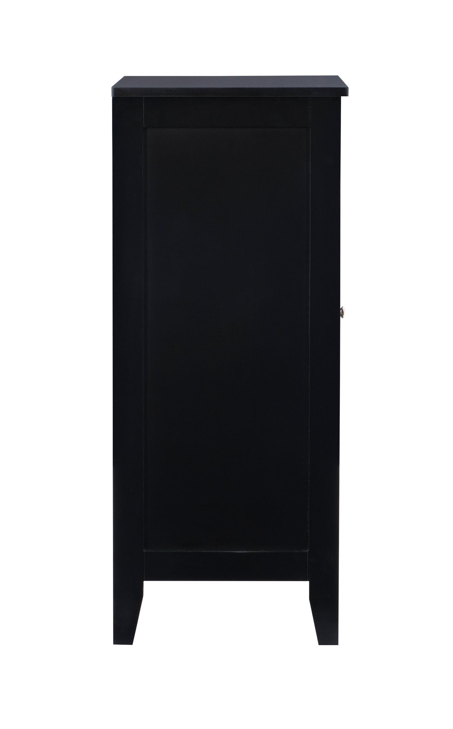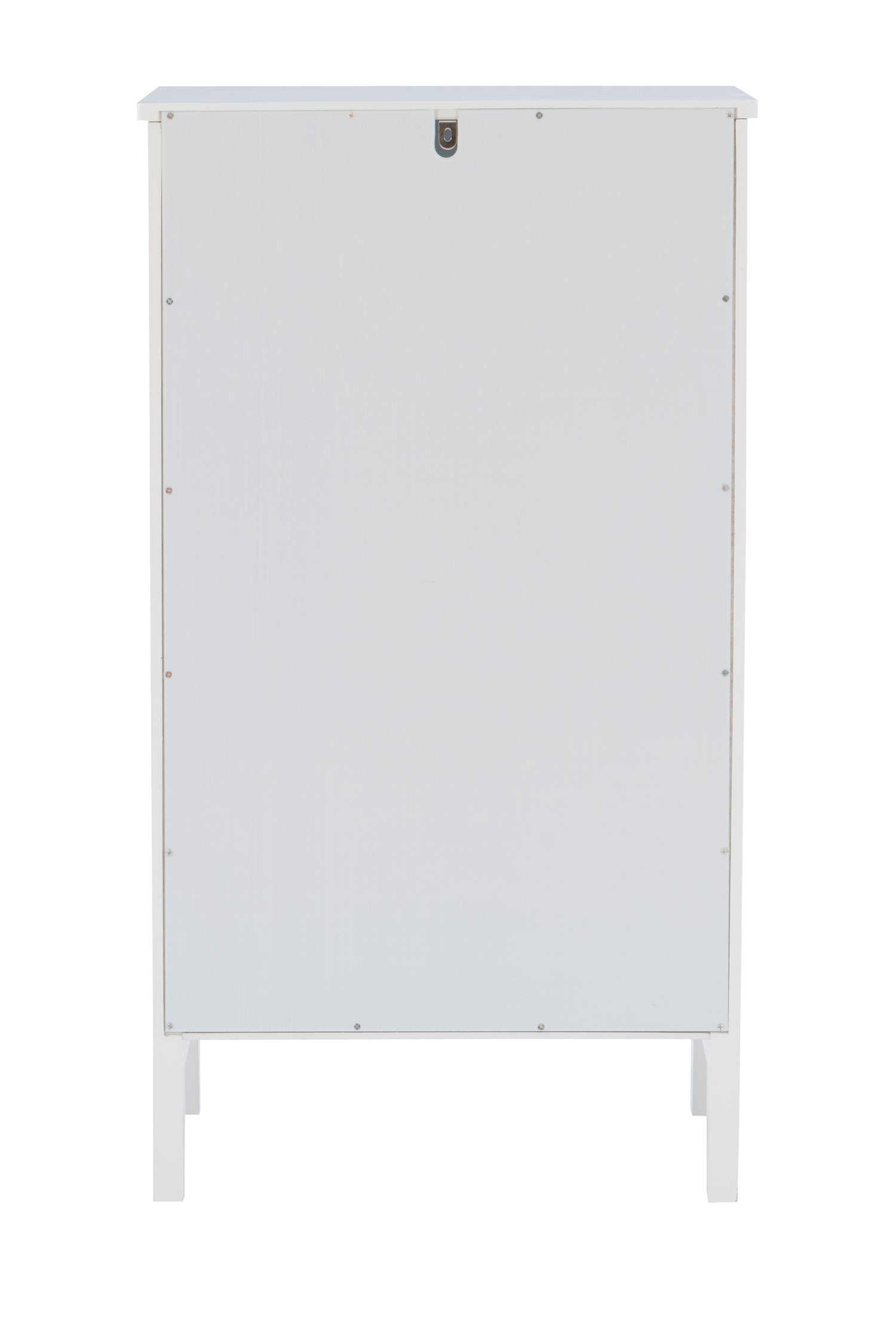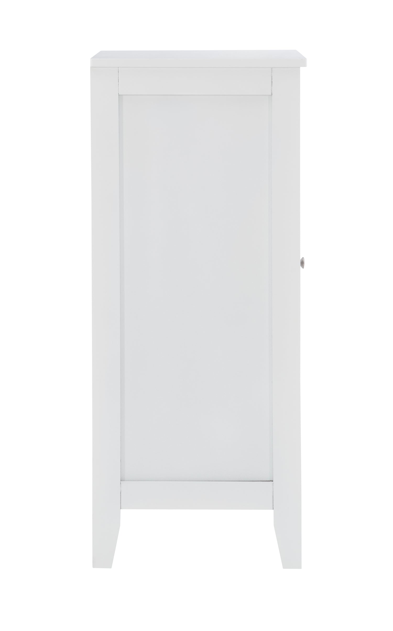This small cabinet is a versatile accent piece, fit for any room in your home. The cabinet features a single designed glass door front that adds interest and appeal to the streamlined frame. Inside, three shelves provide ample storage space for all of your essentials. Finished in a neutral white, black, grey, and brown, the piece will easily complement any existing decor.