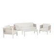 Turn your patio into a sun-washed escape with this 4-piece conversation set. Featuring a roomy 3-seater sofa, 2 coordinating armchairs, and a slatted coffee table, each piece is built with a lightweight yet durable aluminum frame in a crisp white powder-coated finish that stands up to the elements. Taupe polyester rope wraps the sides and backs of the seating for a modern twist on a coastal classic. Plush, all-weather white cushions provide lasting comfort through slow mornings and long, leisurely afternoons. Ideal for entertaining or quiet moments alone, this ensemble adds a refined style and everyday ease to any terrace or backyard space.