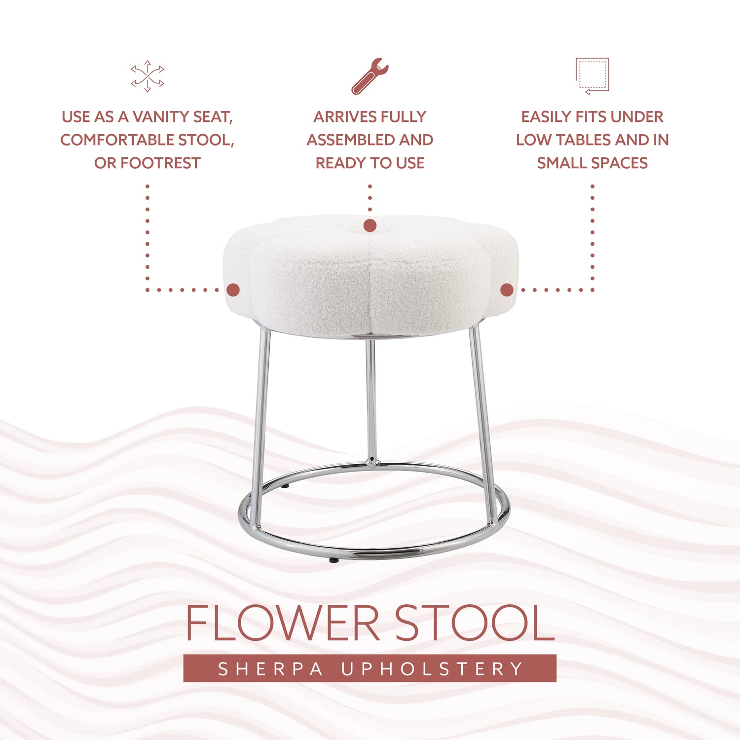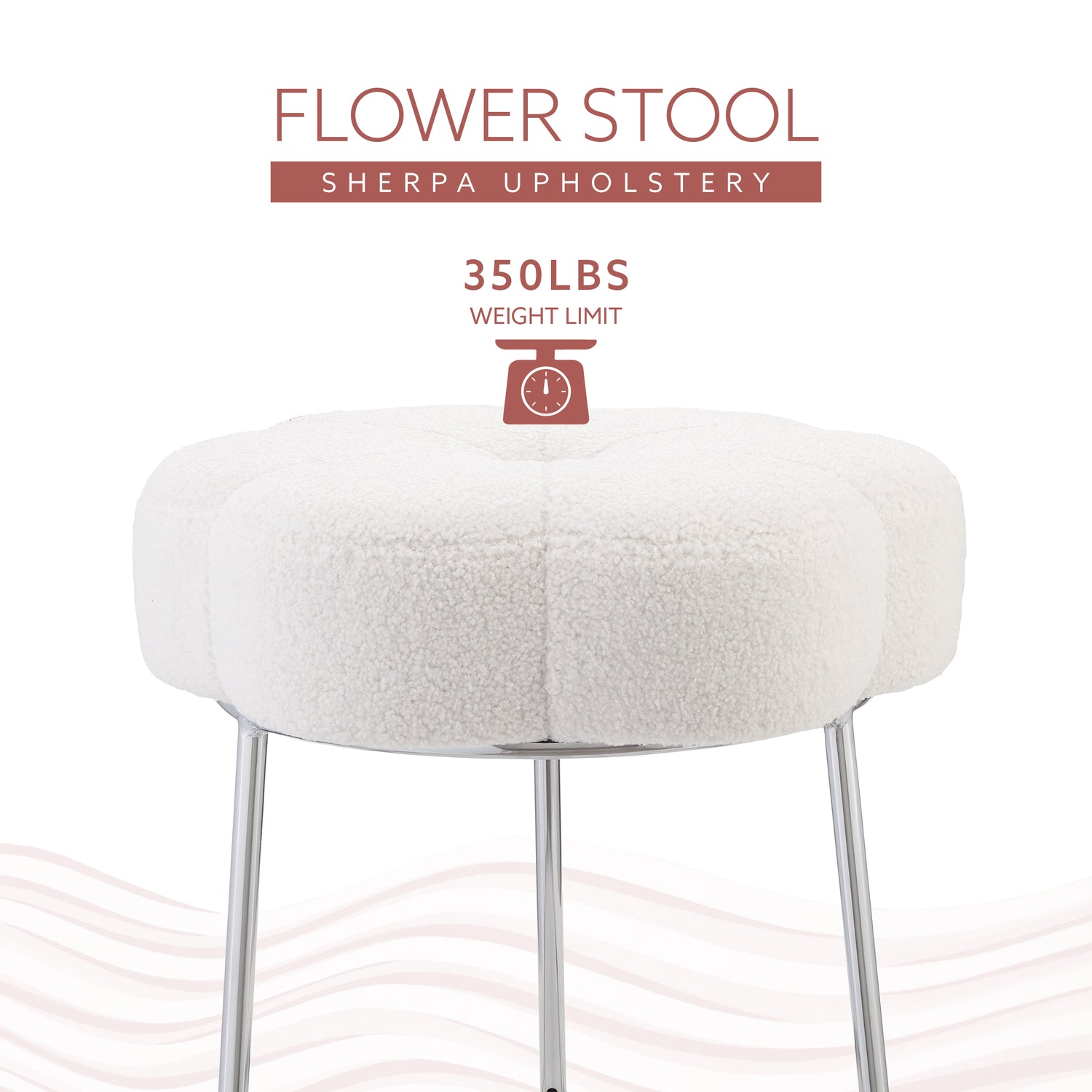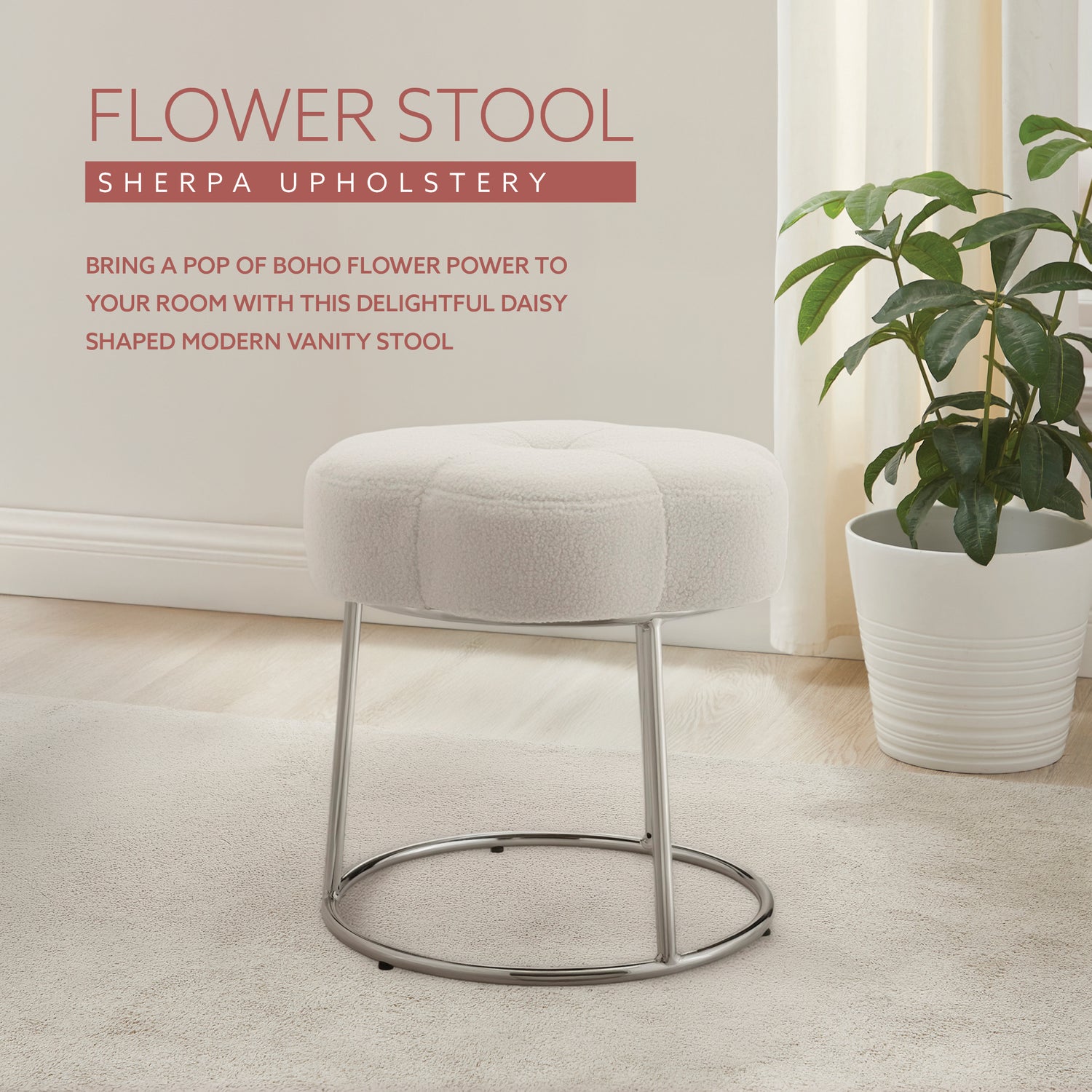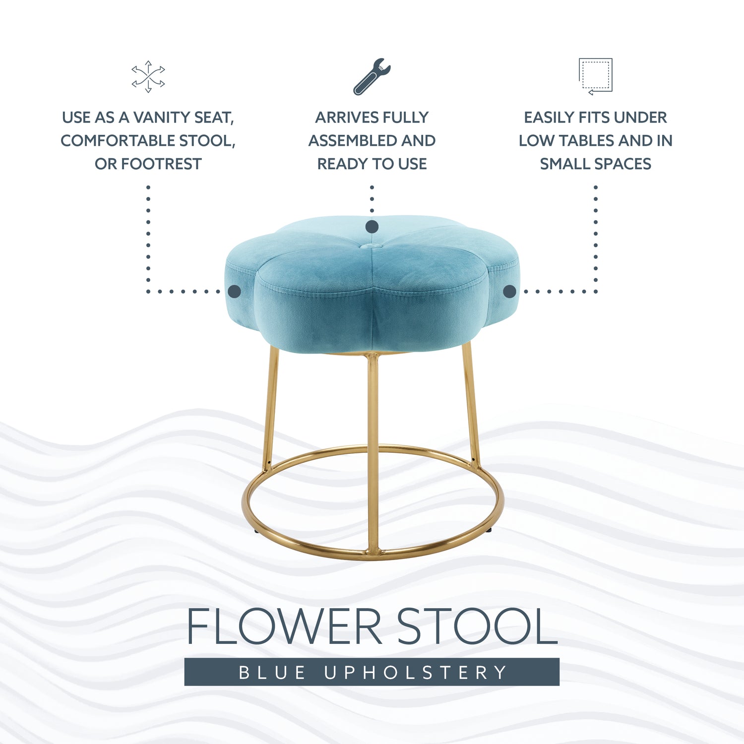 Flower Vanity Stool - Blue is backordered and will ship as soon as it is back in stock.