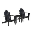 This classic Adirondack chairs and side table set brings timeless outdoor comfort to any patio, deck, or garden space. Featuring the iconic fan-back design with wide, flat armrests and a gently reclined seat, the chairs are engineered for ultimate relaxation. The black finish provides a sophisticated look that complements any outdoor decor while resisting weather and UV damage. The matching side table perfectly complements the chair, providing convenient space for drinks, books, or outdoor essentials. Built with durable construction and traditional craftsmanship, this set combines classic American design with modern materials for years of reliable outdoor enjoyment.