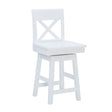 Turn from one conversation to the next with ease on this nimble counter stool. The 180 degree swivel return feature snaps the wide square seat back into position, bringing you front and center with your meal or drink. Constructed of solid beech wood for long term strength and stability, the black frame is also coated in a clear lacquer finish for extra protection from wear and tear. The traditional cross back design is juxtaposed by a boxy silhouette, lending to a hearty modern farmhouse look that feels great in a variety of settings.
